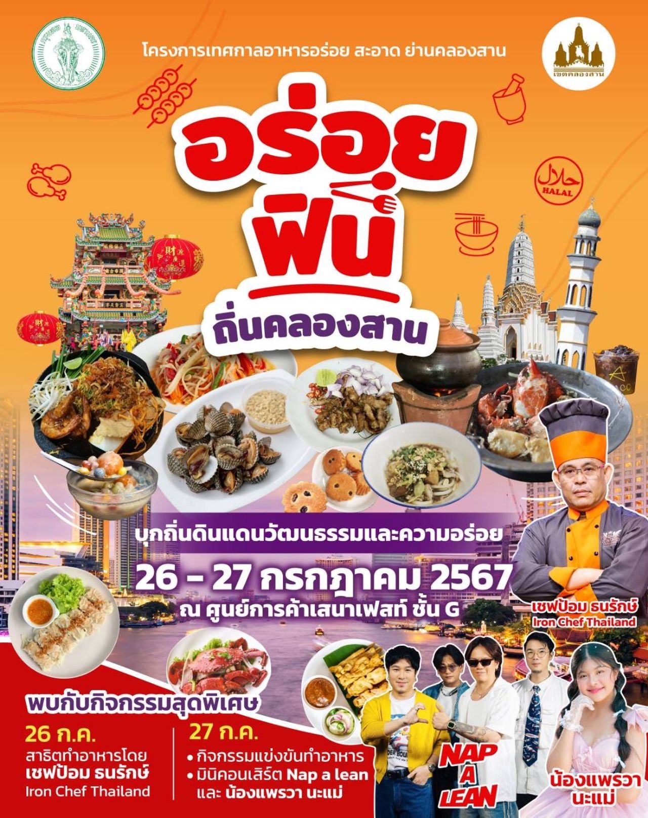 ใครที่ชื่นชอบมินิคอนเสิร์ต และเป็นสายกินเที่ยวช็อป มางานนี้งานเดียวสุดคุ้ม กับงาน “อร่อย ฟิน ถิ่นคลองสาน 2567” ภายในงานพบกับมินิคอนเสิร์ตที่จะมาเสิร์ฟความฟินแบบเต็มอิ่มจากวง NAP A LEAN ที่ขนเพลงฮิตมามอบให้แฟนเพลงแบบเต็มอิ่มจุใจ นอกจากนี้ยังมีน้องแพรวา นะแม่&น้องตะวัน น้อย ที่จะมาร่วมสร้างสีสันความสนุกภายในงาน พร้อมยกขบวนผู้ประกอบการร้านอาหารย่านเขตคลองสานมาเสิร์ฟของอร่อยถึงที่ รวบรวม ร้านเด็ด ร้านดัง กว่า 30 ร้าน มาออกบูธให้ได้ลิ้มรสทั้งอาหารคาว หวาน เครื่องดื่มและอีกมากมาย
