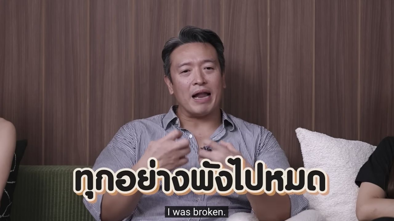 ไม่อยากให้ใครเจอกับความรู้สึกนั้นแต่ที่เขาบอกว่าหัวใจตกลงไปที่ตาตุ่ม มันเป็นอย่างนั้นจริงๆ จิตวิญญาณของเรามันหล่นหายไปเลย แล้วทุกอย่างมันพังไปหมด ความรักยังมีอยู่ ความเสียใจมันก็ยังมีอยู่ มันก็ดึงรั้งอยู่อย่างนั้น ไม่รู้จะมูฟออนยังไง มันอึมครึมอยู่สักพักเพราะไม่อยากให้เขาจากไป ก็ใช้ชีวิตฝืนไปต่อด้วยกัน