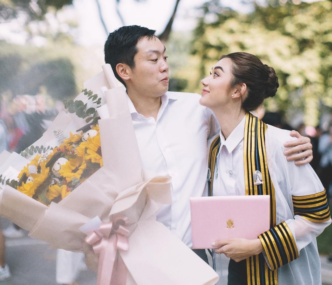 คือที่ผ่านมาหนูก็ไม่เคยเปิดตัว และเขาเป็นแฟนคนแรกที่หนูมีข่าวด้วย เราก็จะไม่ชินกับการที่มีคนเดินเข้ามาถามเราว่า โสดแล้วเหรอ เป็นอะไรมั้ย เราก็ไม่ชินแบบนั้น และทุกคนรู้เรื่องหมดเลย เป็นจุดที่เราไม่ชินตรงนี้มากกว่า"