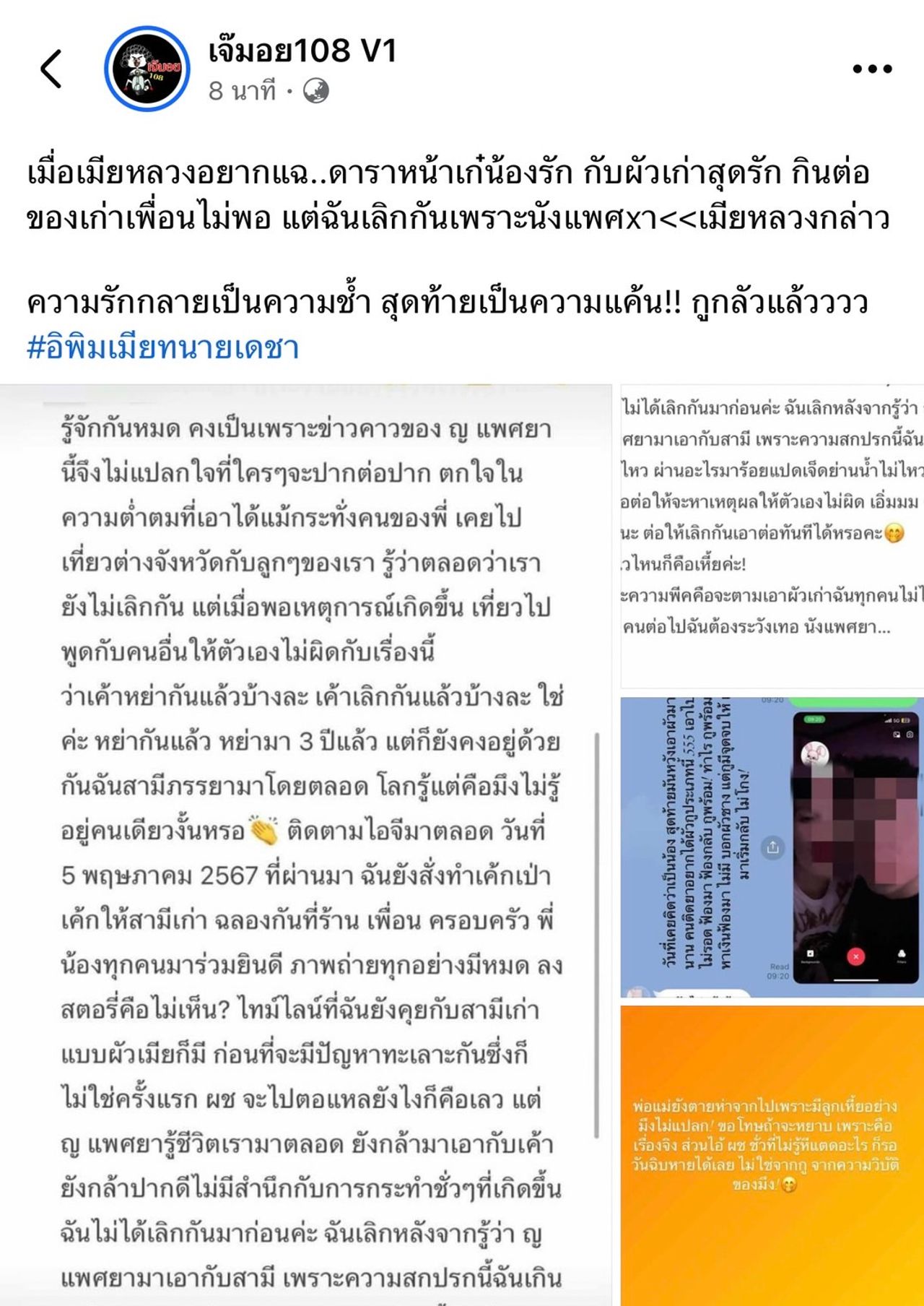 หลังจากที่เพจดัง เจ๊มอย 108 ออกมาเล่านิทานถึงความสัมพันธ์ซับซ้อนของเมียหลวง สามี และดาราสาวหน้าเก๋ จนทำชาวเน็ตมึนงงกันไปก่อนหน้านี้