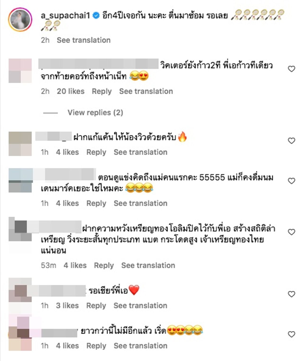 งานนี้หลังจากที่ชาวเน็ตได้เห็นคลิปและแคปชั่นของพี่เอก็ได้เข้ามาคอมเมนต์อย่างมากมายว่า "วิคเตอร์ยังก้าว 2 ที พี่เอก้าวทีเดียวจากท้ายคอร์ทถึงหน้าเน็ท, ฝากแก้แค้นให้น้องวิวด้วยครับ, ตอนดูแข่งคิดถึงแม่คนแรกคะ 55555 แม่ก็คงดื่มนมเดนมาร์คเยอะใช่ไหมคะ, ฝากความหวังเหรียญทองโอลิมปิคไว้กับพี่เอ สร้างสถิติล่าเหรียญ วิ่งระยะสั้นทุกประเภท แบต กระโดดสูง เจ้าเหรียญทองไทยแน่นอน, ยาวกว่านี้ไม่มีอีกแล้ว เริ่ด, ขายาวกว่าวิคเตอร์แล้ว, สามก้าว ก็ถึงเดนมาร์ค"