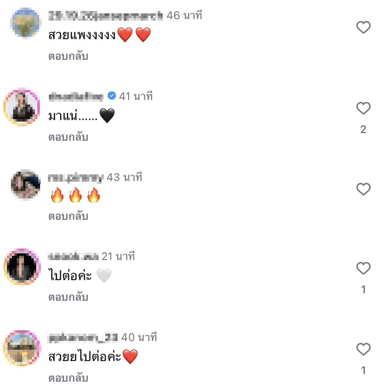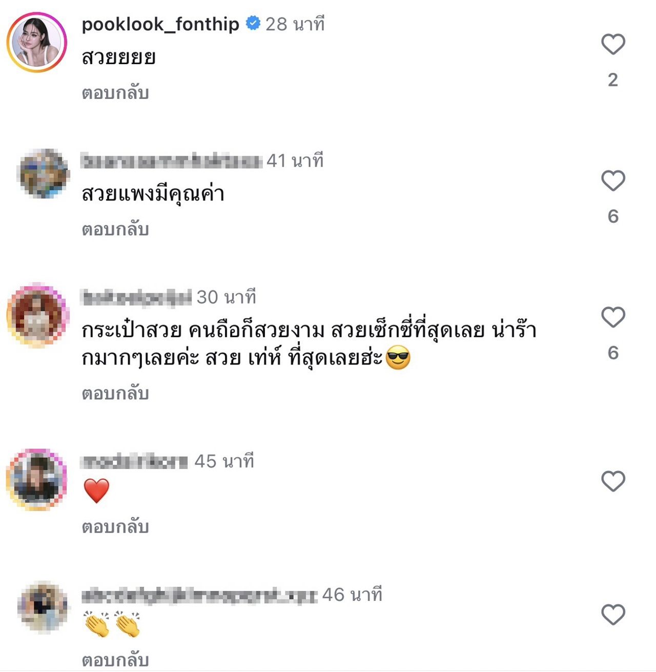 ทำเอาเพื่อนร่วมวงการอย่าง ต้นหอม ศกุนตลา ยังเข้ามาคอมเมนต์ว่า "ฟาดดด" รวมไปถึงสาว ปุ๊กลุก ฝนทิพย์ ก็ยังเข้ามาชมว่าสวย ท่ามกลางชาวเน็ตอีกเป็นจำนวนมากที่เข้ามาชมลุคนี้ของ สาวโยเกิร์ต พร้อมกับส่งกำลังใจรัวๆ เช่น " สวย และแพง, สวย มีคุณค่า คู่ควรกับทุกอย่างค่ะ, ไปค่ะแม่ แบบนี้สบายใจละ แน่ใจว่าคุณโยไม่กลับไปแน่, ยิ้มมุมปากกก, สวย มีคุณค่า คู่ควรกับทุกอย่างค่ะ" เป็นต้น.