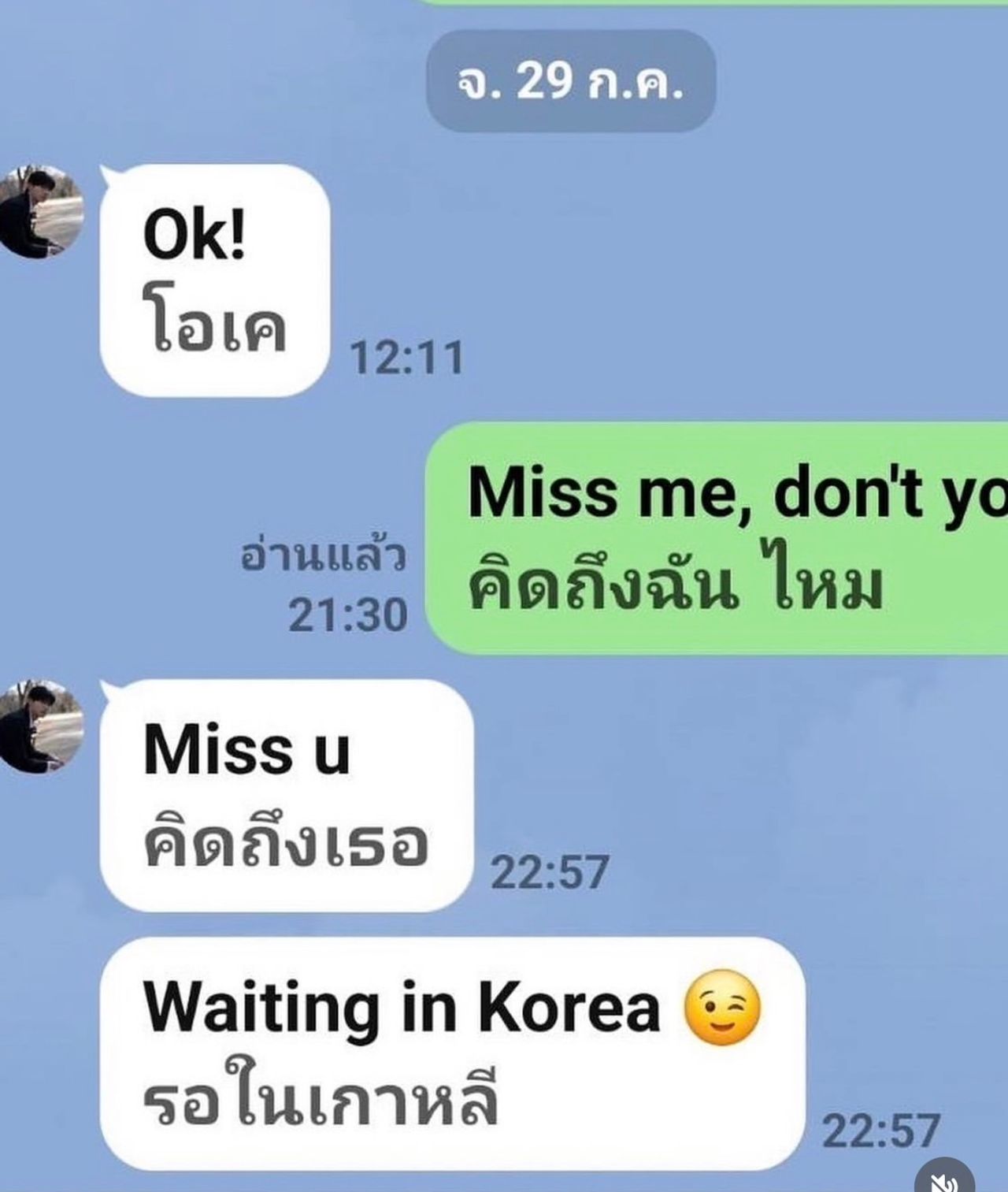ซึ่งบทสนทนาดังกล่าว เริ่มต้นจากการที่ ไก่ วรายุฑ ถามอีกฝ่ายว่า "คิดถึงฉันมั้ย" ก่อนจะพูดถึงแพลนการเดินทาง ว่าตนเองกำลังจะบินไปหาที่ประเทศเกาหลี ในวันที่ 17-20 สิงหาคมนี้ โดย คิมยูมิน ก็ตอบรับด้วยข้อความดีต่อใจกลับมาว่า "นั่นเป็นข่าวดี ฉันจะรอเธอที่เกาหลี"