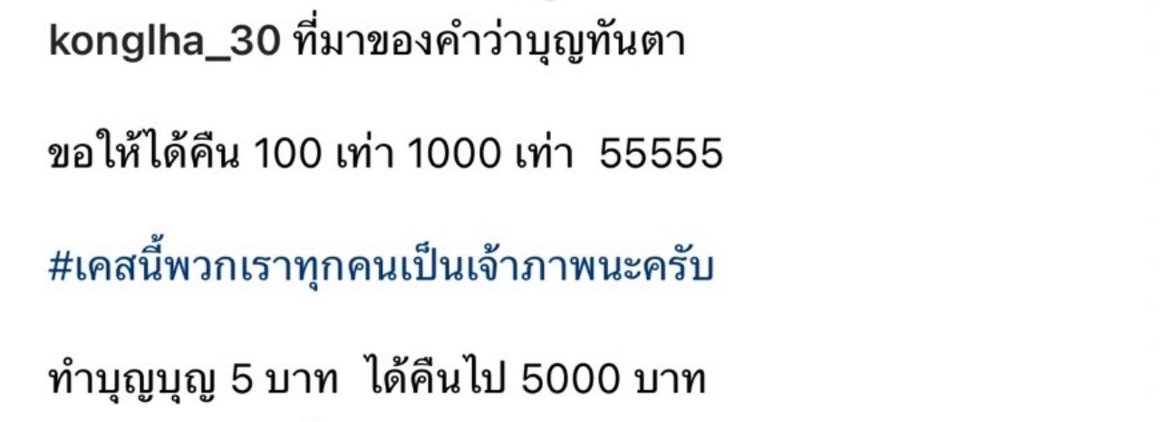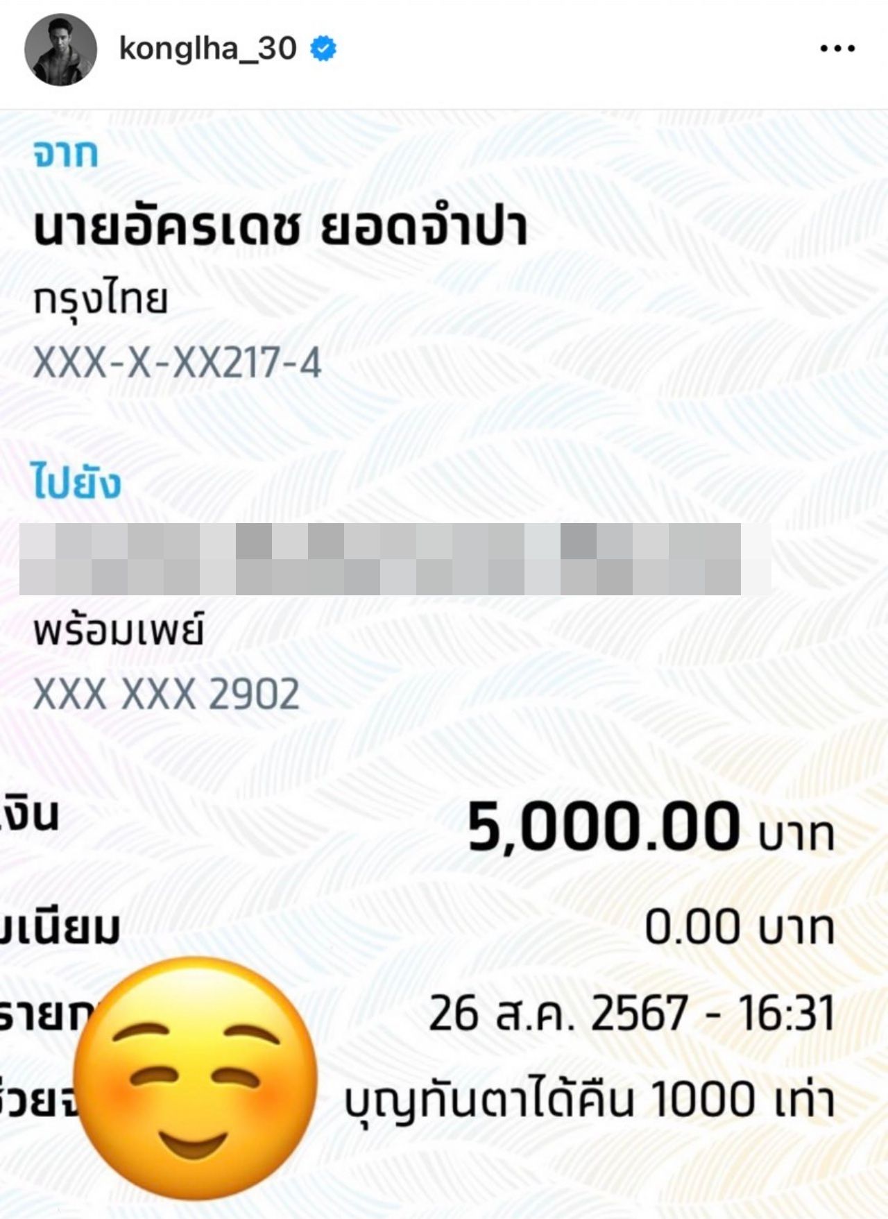 แต่สิ่งที่ทำให้หลายคนรู้สึกใจฟู ก็คือ ก้อง ห้วยไร่ ได้โอนเงินกลับไปให้ผู้หญิงคนดังกล่าว 5,000 บาท พร้อมเขียนข้อความว่า "ที่มาของคำว่า บุญทันตา ขอให้ได้คืน 100 เท่า 1000 เท่า เคสนี้พวกเราทุกคนเป็นเจ้าภาพนะครับ ทำบุญ 5 บาท ได้คืนไป 5,000 บาท"