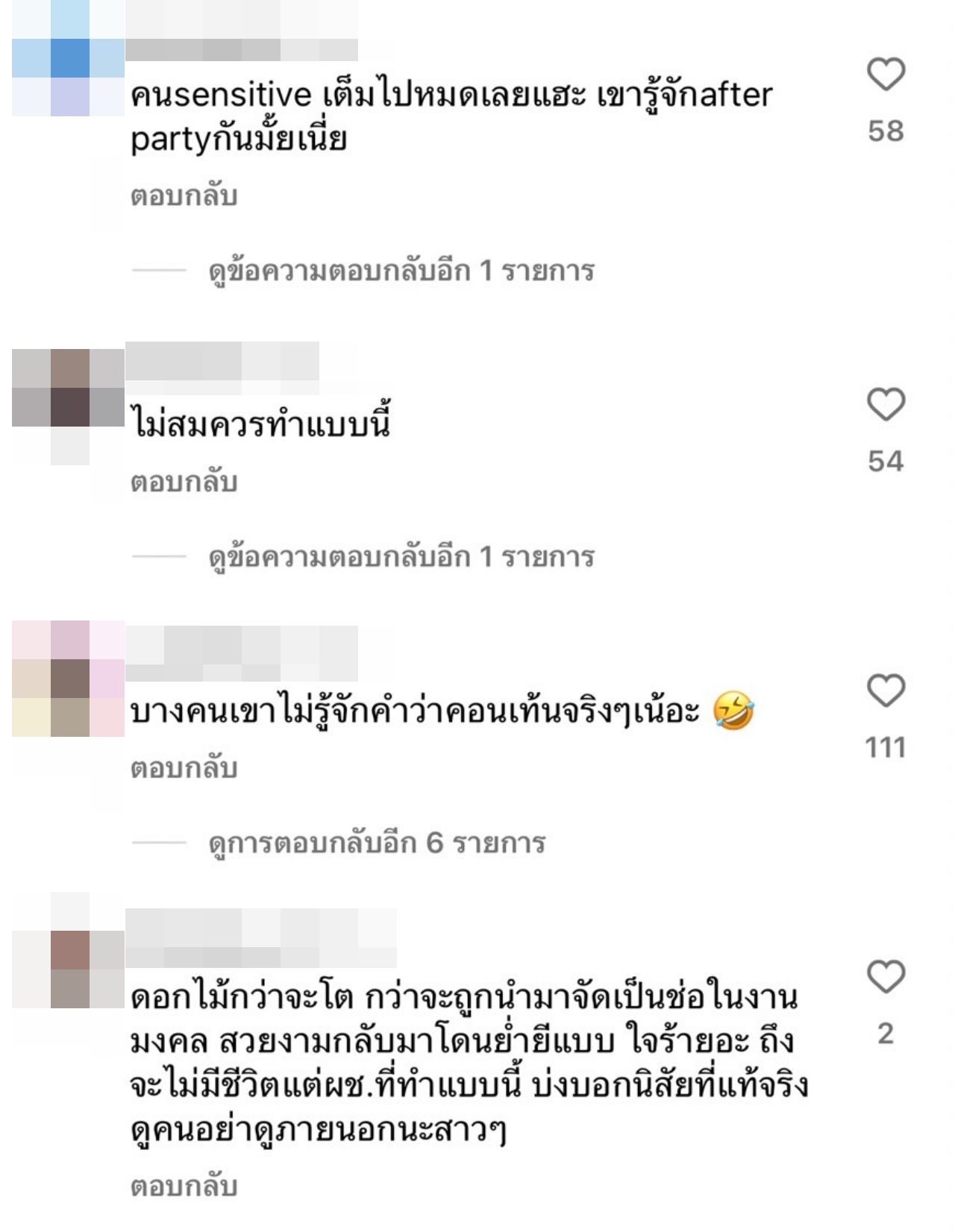 - ดอกไม้กว่าจะโต กว่าจะถูกนำมาจัดเป็นช่อในงานมงคลสวยงาม กลับมาโดนย่ำยีแบบใจร้ายอะ ถึงจะไม่มีชีวิตแต่ ผช.ที่ทำแบบนี้ บ่งบอกนิสัยที่แท้จริง ดูคนอย่าดูภายนอกนะสาวๆ