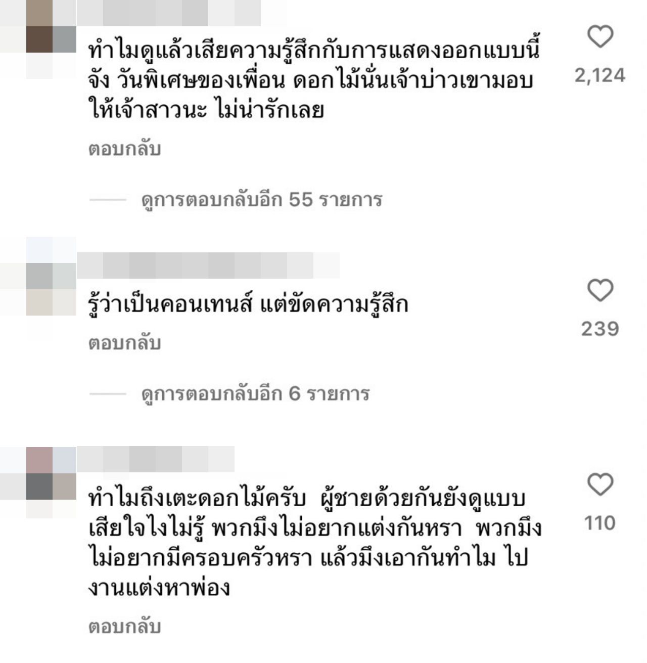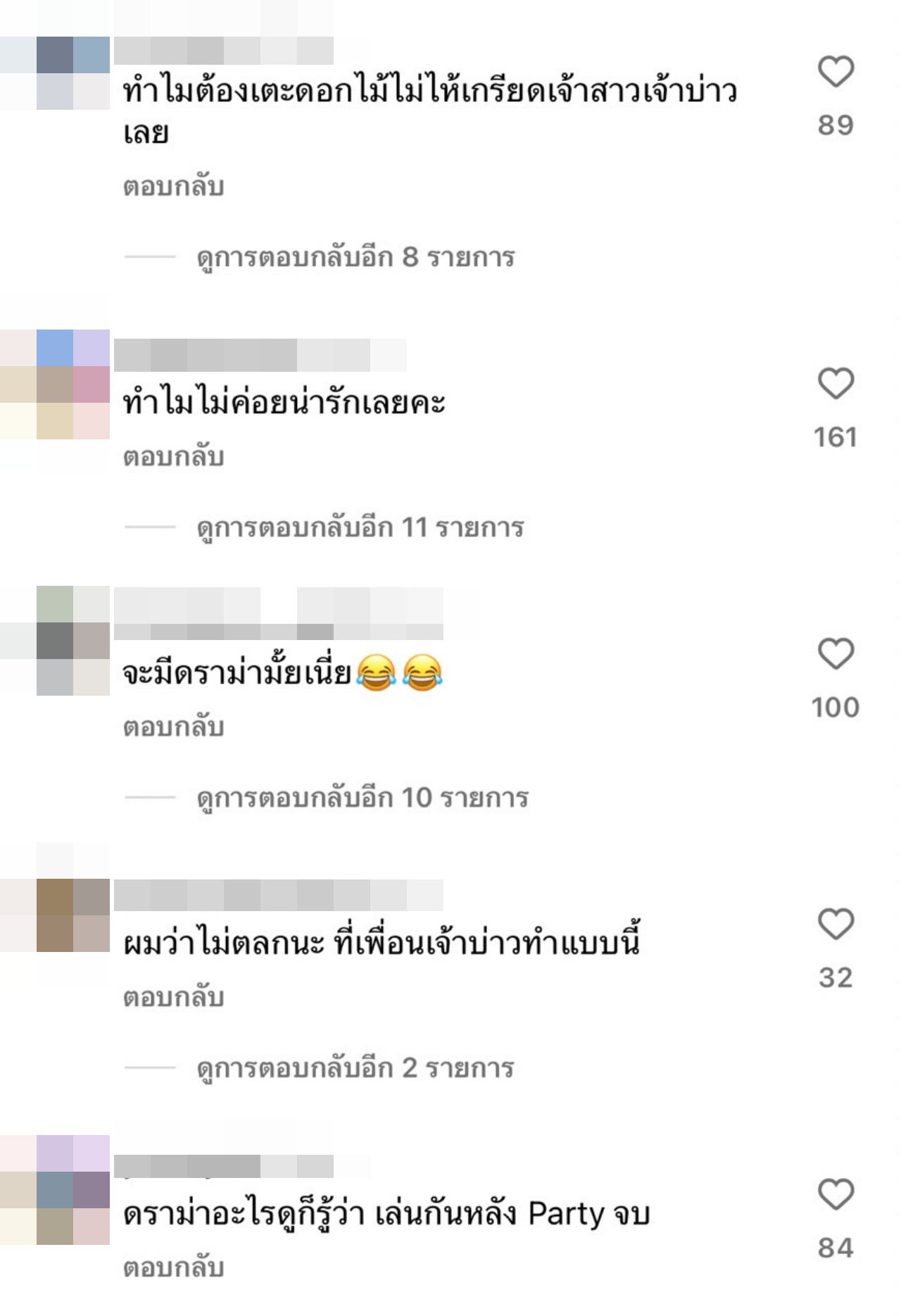 หลังจากที่หลายคนได้เห็นคลิปดังกล่าว กลับไม่ขำด้วย และเกิดดราม่าขึ้นมาทันที โดยมองว่าเป็นการกระทำที่ไม่เหมาะสม เสียความรู้สึก เพราะเป็นวันสำคัญของเพื่อน ซึ่งก็ได้มีคนเข้ามาคอมเมนต์จำนวนมาก อาทิ