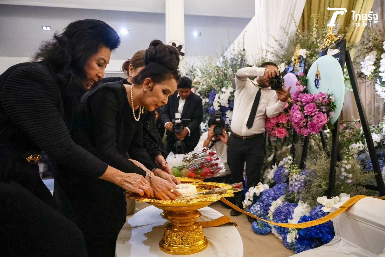 บรรยากาศภายในพิธีนอกจากจะมีคนในครอบครัว ทั้งอดีตนางเอกชื่อดัง เพชรา เชาวราษฎร์ ภรรยาของชรินทร์ รวมไปถึงพิธีกรสาว แหวนแหวน ปวริศา เพ็ญชาติ และนักร้องสาว หวาย ปัญญ์ธิษา เธียรประสิทธิ์ ซึ่งเป็นหลานสาวของศิลปินดัง ยังมีทั้งญาติพี่น้อง คนสนิท ผู้ใหญ่ มาร่วมงานกันมากมาย