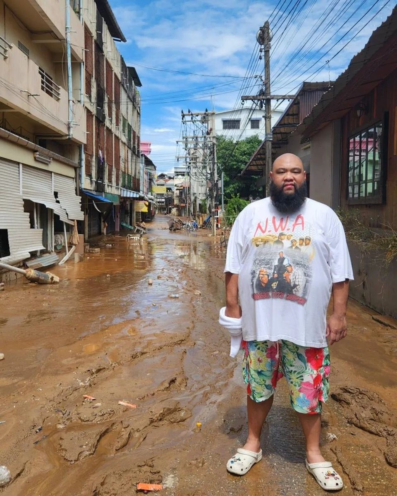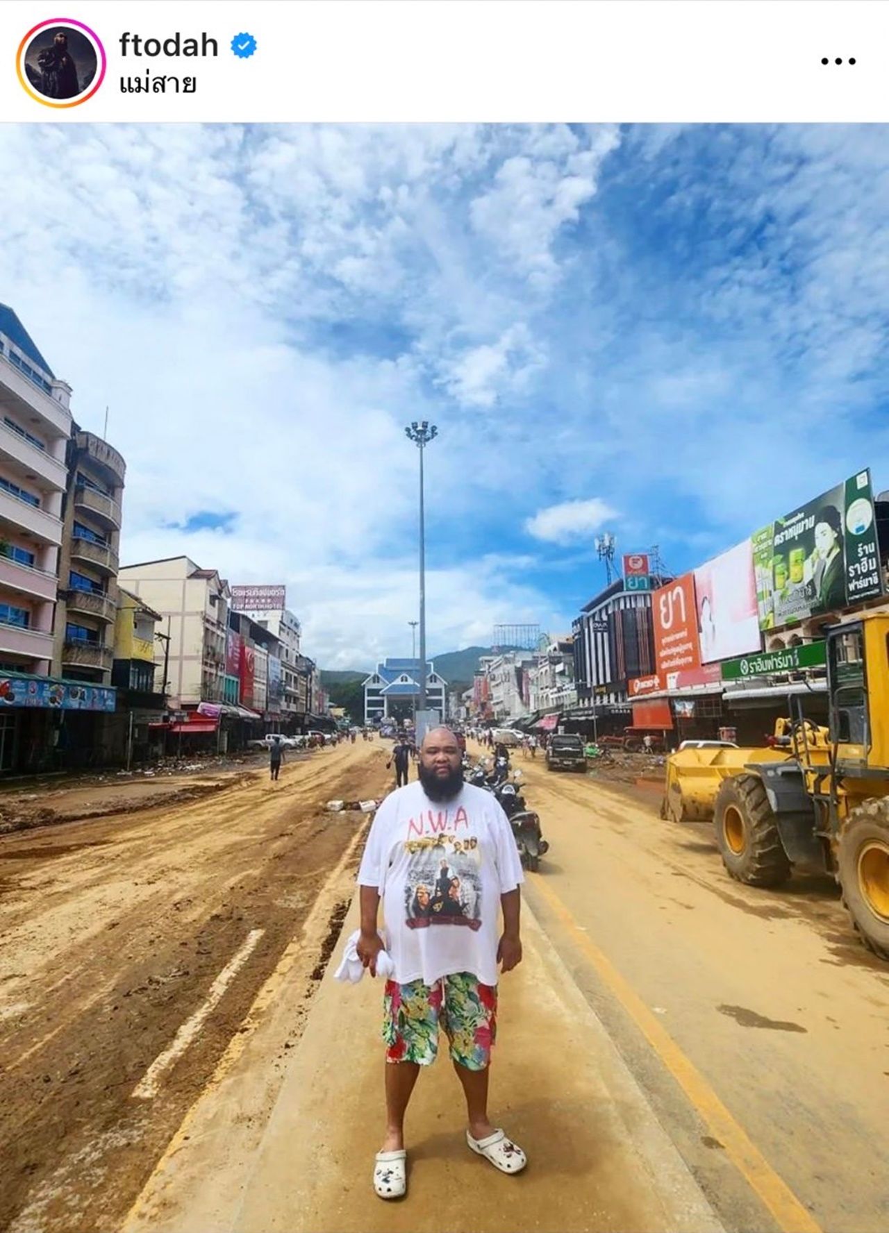 "แม่สายวันนี้น้ำลงบ้างแล้ว แต่ยังมีจุดน้ำท่วมอันตราย และยังมีผู้ประสบภัยติดรอการช่วยเหลืออีกเป็นจำนวนมาก บางจุดเป็นโคลนลึก ยากที่จะเข้าไปช่วยเหลือ