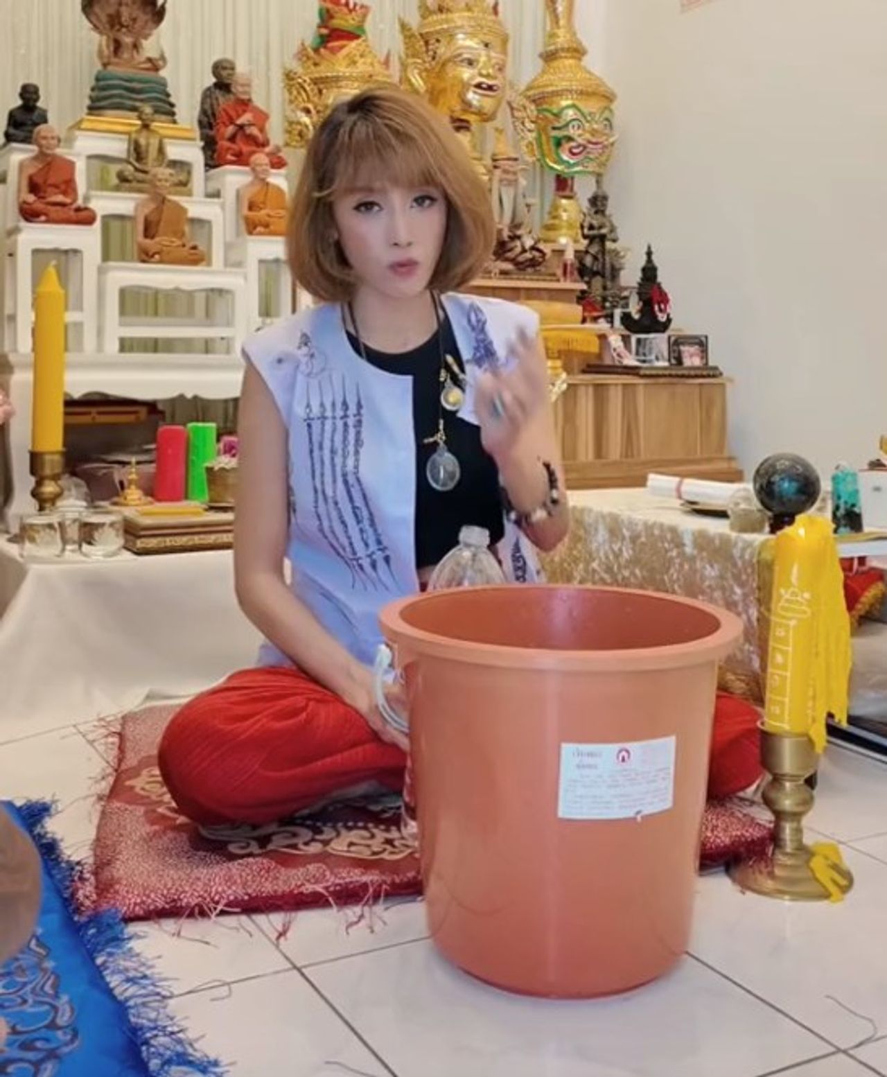 ซึ่งในบางคลิปที่แพรโพสต์ลงในติ๊กต่อกนั้น เจ้าตัวได้บอกว่า "อาบน้ำมนต์ธรณีสาร ถอนล้างสิ่งไม่ดี คุณไสยมนต์ดำฯ ที่นี่เป็นวิชาที่สืบทอด ทุกคาถาเป็นพุทธคุณตามตำราโบราณ" พร้อมเขียนแคปชั่นว่า “ความเชื่อส่วนบุคคล” อีกด้วย