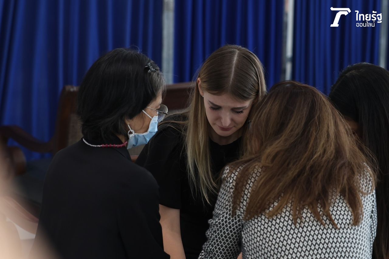 ทางด้าน ดาเรีย เชฟรุก ภรรยา อ๋อม อรรคพันธ์ พร้อมด้วยแม่และน้องสาวยังอยู่ในอาการโศกเศร้าที่ต้องสูญเสียคนที่รักไปอย่างไม่มีวันกลับ ซึ่งในระหว่างรอเวลารดน้ำศพ ก็ได้พูดคุยกันก่อนจะกอดกันร่ำไห้ ซึ่งเป็นภาพที่ทำให้หลายคนที่ได้เห็นถึงกับน้ำตาซึม