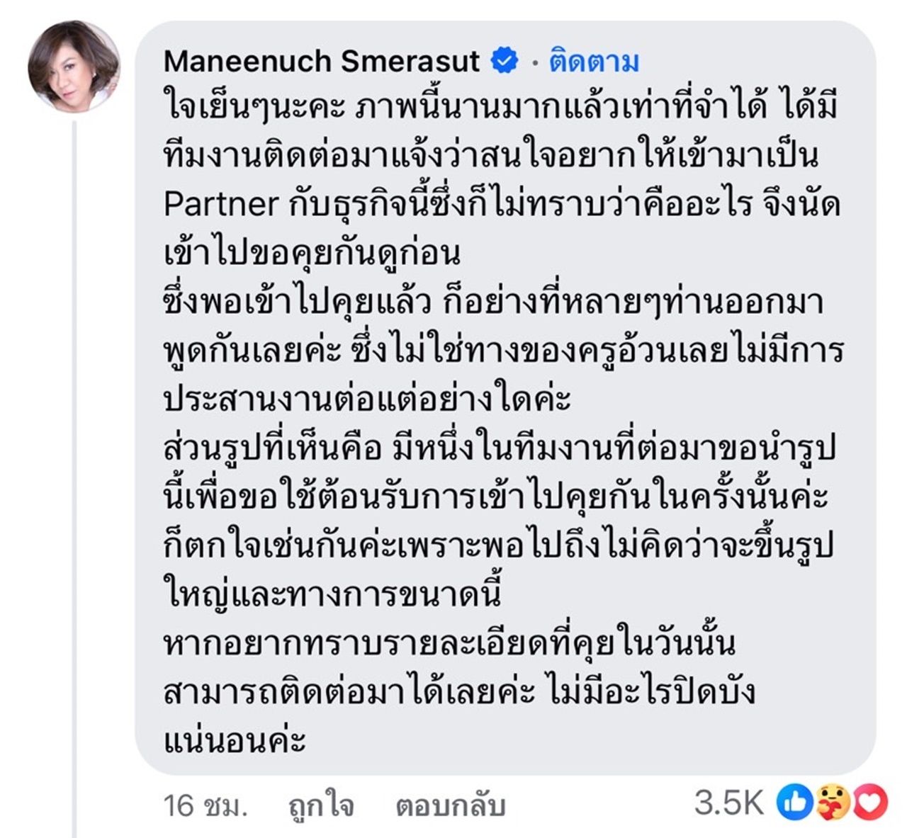 "ใจเย็นๆนะคะ ภาพนี้นานมากแล้วเท่าที่จำได้ ได้มีทีมงานติดต่อมาแจ้งว่าสนใจอยากให้เข้ามาเป็น Partner กับธุรกิจนี้ซึ่งก็ไม่ทราบว่าคืออะไร จึงนัดเข้าไปขอคุยกันดูก่อน