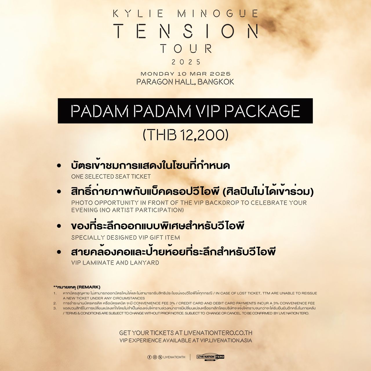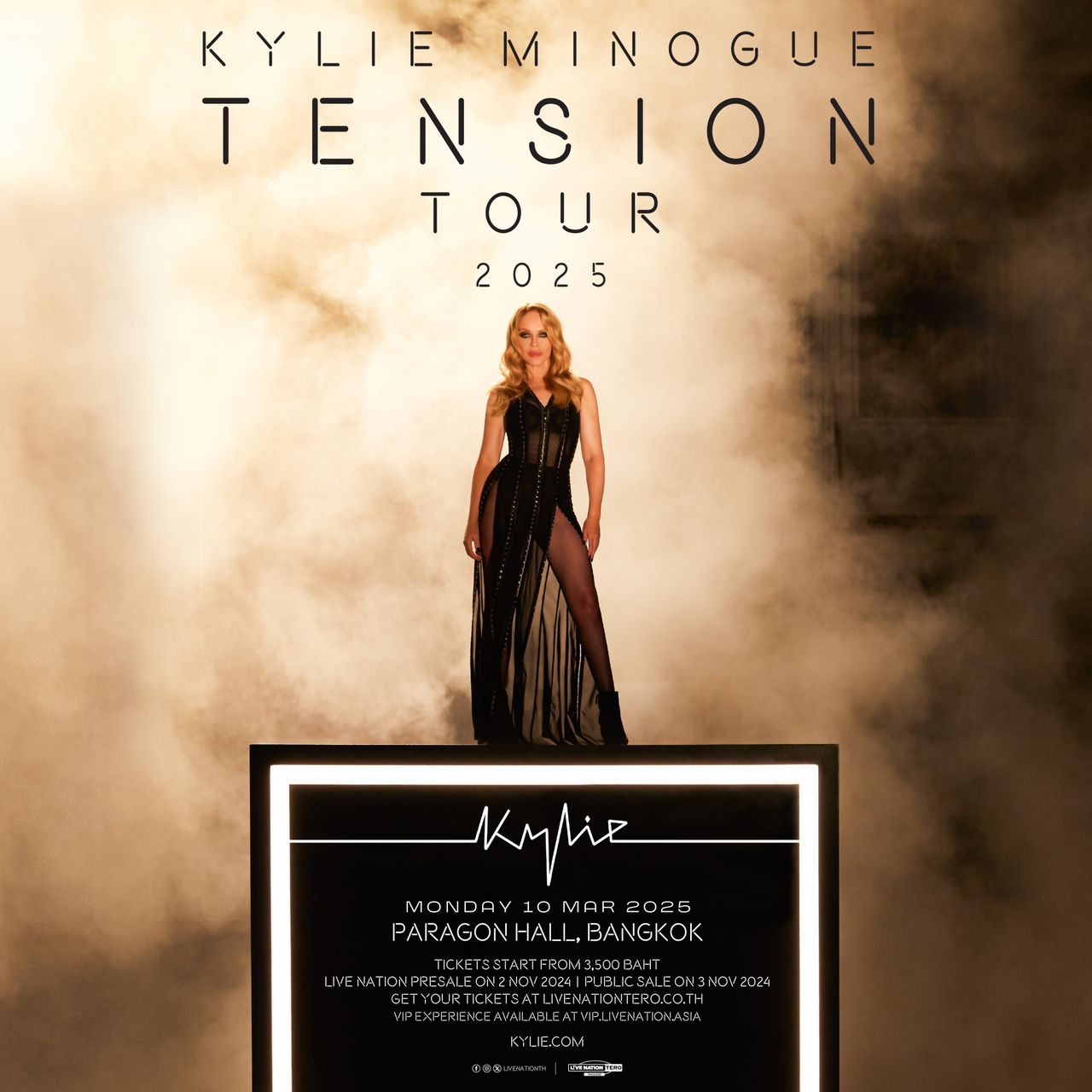 Minogue: Tension Tour 2025’ ที่ประเทศไทยจะมีขึ้นในวันจันทร์ที่ 10 มีนาคม 2568 ที่พารากอน ฮอลล์