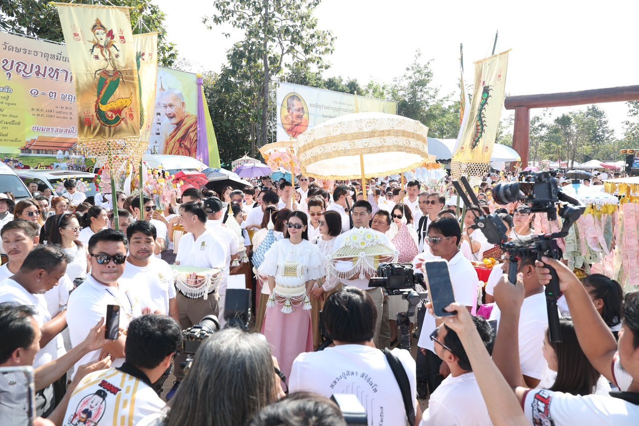 ทั้งคู่จูงมือกันไปถึงภาคอีสานวัด พระธาตุหมื่นหิน อ.เขาวง จ.กาฬสินธุ์ รวมยอดเงินทำบุญกว่า 89,761,367.05 บาท ท่ามกลางเพื่อนพี่น้องที่มาร่วมงานกันอย่างคับคั่ง
