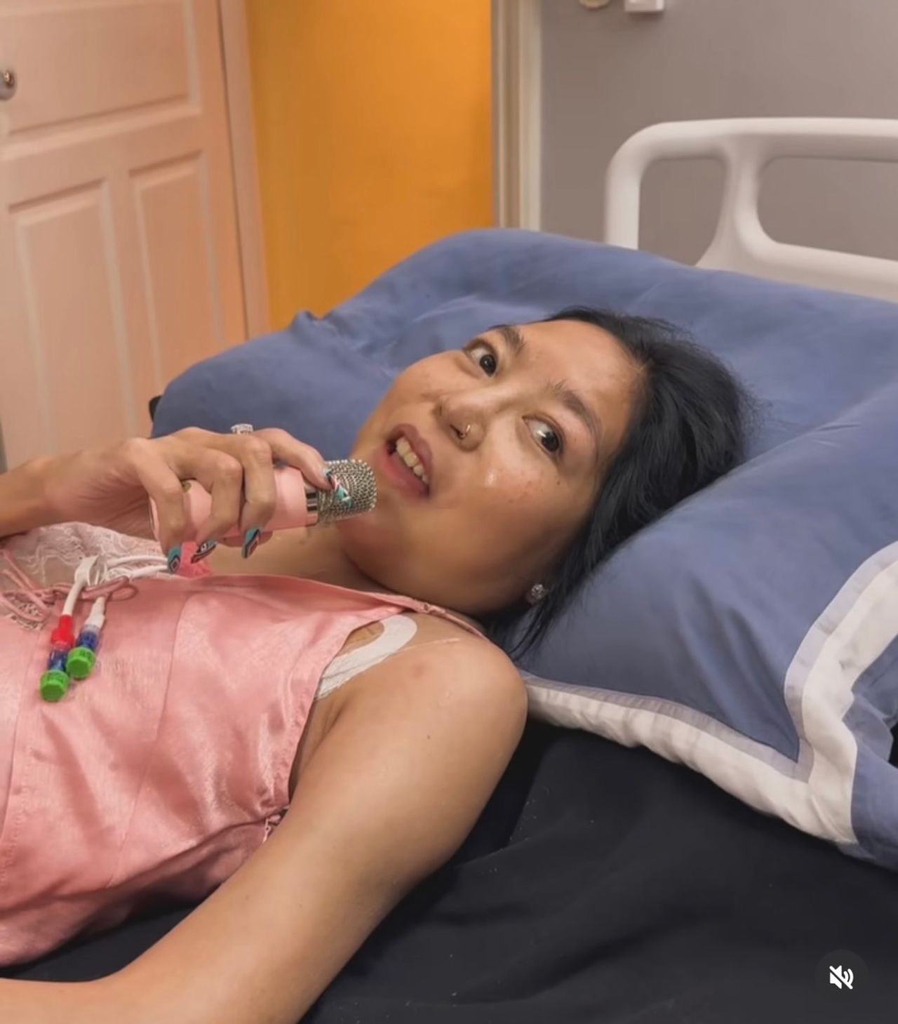 พร้อมกับเขียนแคปชั่นใต้โพสต์ดังกล่าวว่า "เราคนตัวเล็ก 2 ชีวิต ที่ดิ้นรนมา 7 ปี เพียงเพื่ออยากจะดำรงชีวิตปกติเหมือนกับมนุษย์ทั่วไปให้พอมีรอยยิ้มได้บ้างในเเต่ละวันที่ยังหายใจกันอยู่ เเต่มาพบกับการกระทำของสถานพยาบาลที่มองคนไข้เป็นเพียงลูกค้า