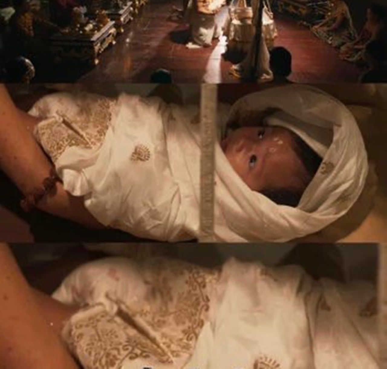 - ฉากผ้าอ้อมเด็กโผล่มาในสมัยของอโยธยา เป็นฉากที่พระราชโอรสของ จินดา (รับบทโดย ใหม่ ดาวิกา) ซึ่งพระราชโอรสคนนี้ก็สวมใส่แพมเพิร์สข้ามยุคผิดสมัยกันแบบคาตา จนความน่าเชื่อถือของละครพีเรียดดูลดลงไปมาก