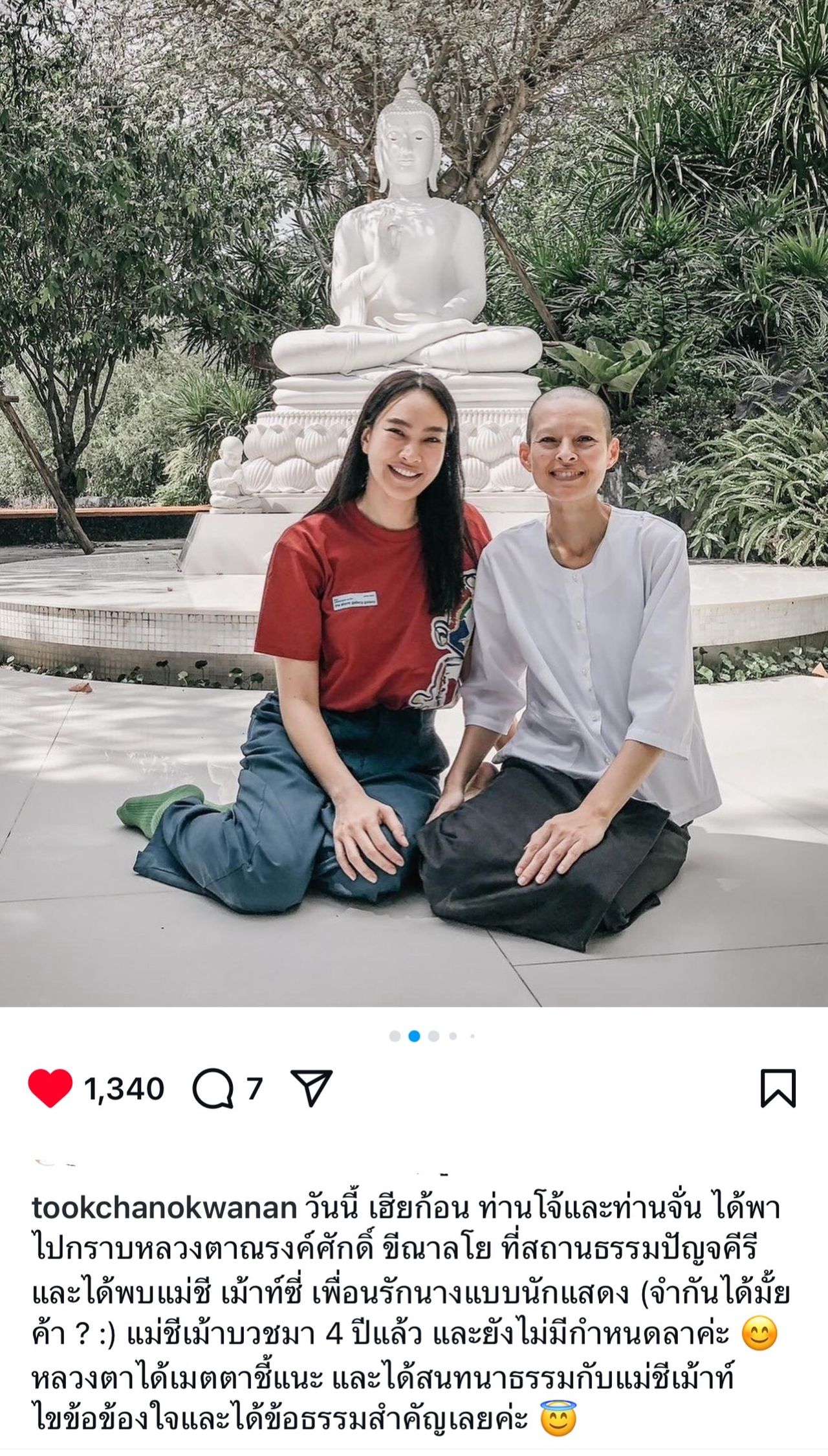 ล่าสุดเพื่อนรักอย่าง ตุ๊ก ชนกวนันท์ ก็ได้โพสต์ภาพคู่กับ แม่ชีเม้าท์ ที่สถานธรรม ปัจคีรี เขาใหญ่ พร้อมข้อความว่า "วันนี้ เฮียก้อน ท่านโจ้และท่านจั่น ได้พาไปกราบหลวงตาณรงค์ศักดิ์ ขีณาลโย ที่สถานธรรมปัญจดีรีและได้พบแม่ชี เม้าท์ซี่ เพื่อนรักนางแบบนักแสดง (จำกันได้มั้ยค้า ? :)