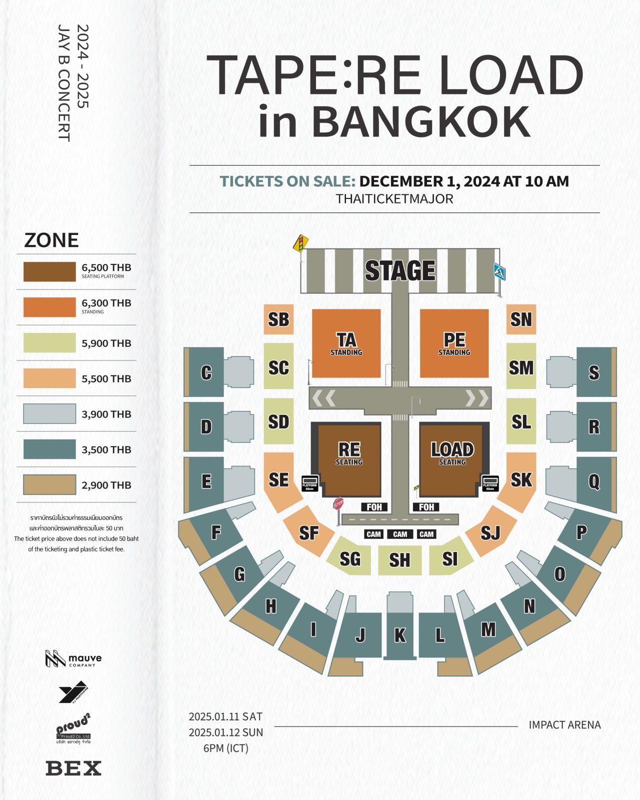 โดยงาน “2024-2025 JAY B CONCERT [TAPE: RE LOAD] IN BANGKOK” จะถูกจัดขึ้นในวันเสาร์ที่ 11 มกราคม 2568 และ วันอาทิตย์ที่ 12 มกราคม 2568 เวลา 18:00 น. ณ อิมแพ็ค อารีน่า เมืองทองธานี บัตรราคา 6,500 / 6,300 (บัตรยืน) / 5,900 / 5,500 / 3,900 / 3,500 และ 2,900 บาท และบัตรทุกที่นั่งจะได้รับบัตรแข็งที่ระลึก / EXCLUSIVE PHOTOCARD (1EA) และ OFFICIAL POSTER อีกด้วย