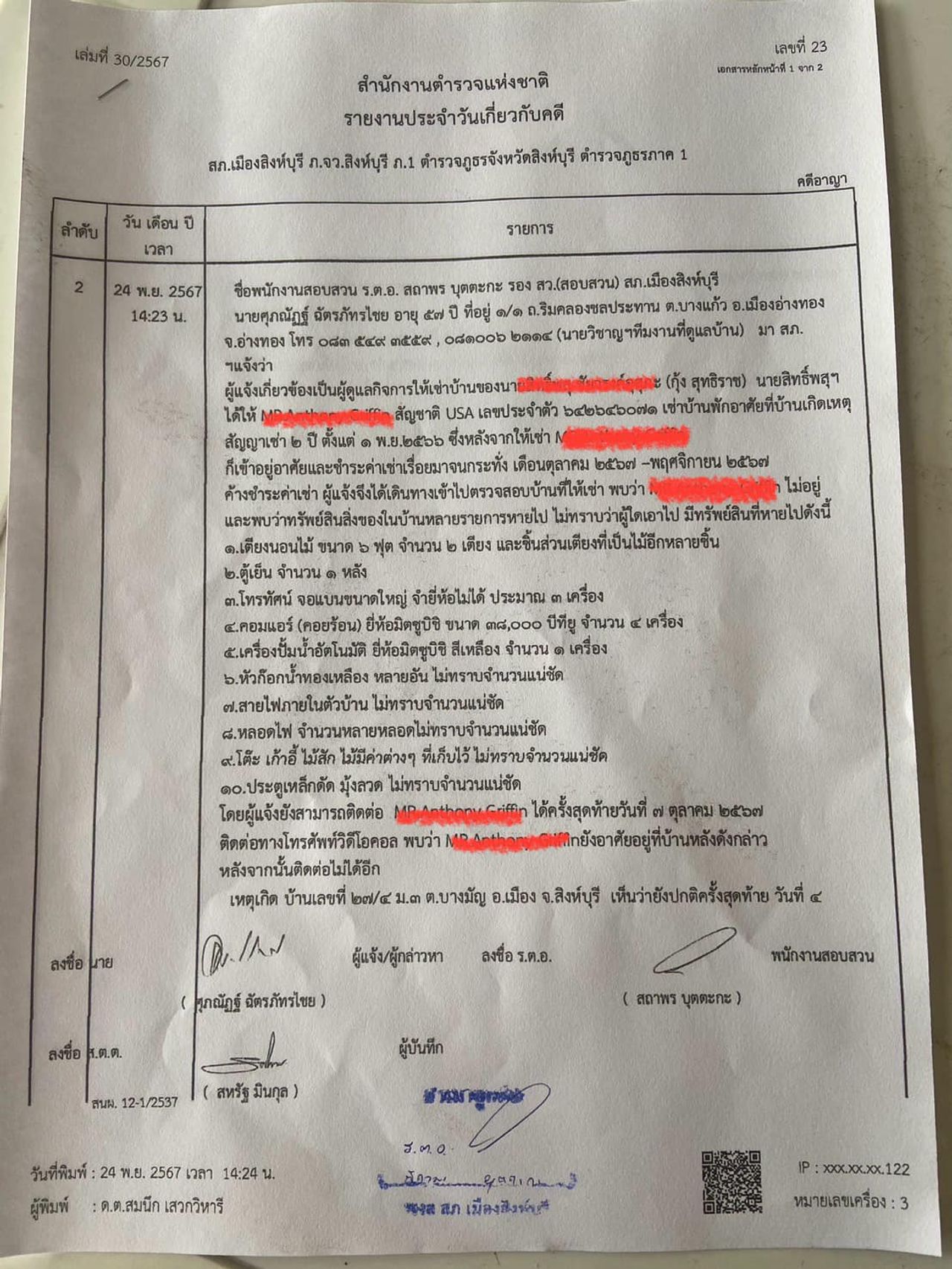 “บ้านผมที่สิงห์บุรีโดนยกเค้า มันอุกอาจมาก ฝากเจ้าหน้าที่ตำรวจ สภ.เมืองสิงห์บุรี ติดตามด้วยนะครับ โดนมา 3-4 ครั้งแล้ว ครั้งนี้หนักสุด คงกะรื้อไปทั้งบ้านเลยมั้ง แล้วมันเตรียมการจะกลับมาอีกรอบ”
