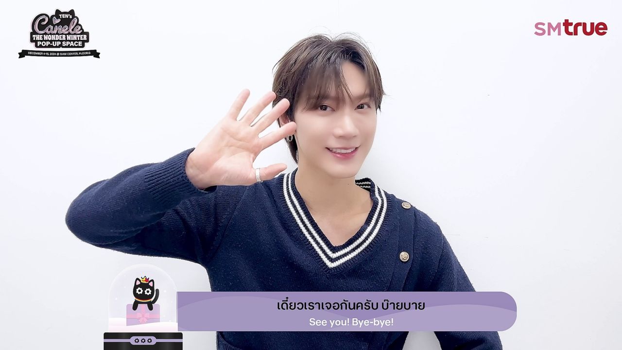 “สวัสดีครับทุกคน ผม TEN เองนะครับ วันนี้ตื่นเต้นมากที่จะได้ชวนทุกคนมาร่วมงาน TEN's CANELE 'THE WONDER WINTER' POP-UP SPACE by SM True ที่ Siam Center ชั้น G นะครับ ทุกคนจะได้เจอกับ Special Version ของ CANELE และสินค้าใหม่ ๆ หลาย ๆ อันเลยครับ พร้อมกับมีทั้ง Photo Booth และ Cafe ครับ อยากให้ทุกคนมาร่วมถ่ายรูปกันเยอะ ๆ และมาสร้างความทรงจำดี ๆ กับ TEN และ CANELE นะครับ วันที่ 4-15 ธันวาคมนี้ เดี๋ยวเราเจอกันครับ บ๊ายบาย”