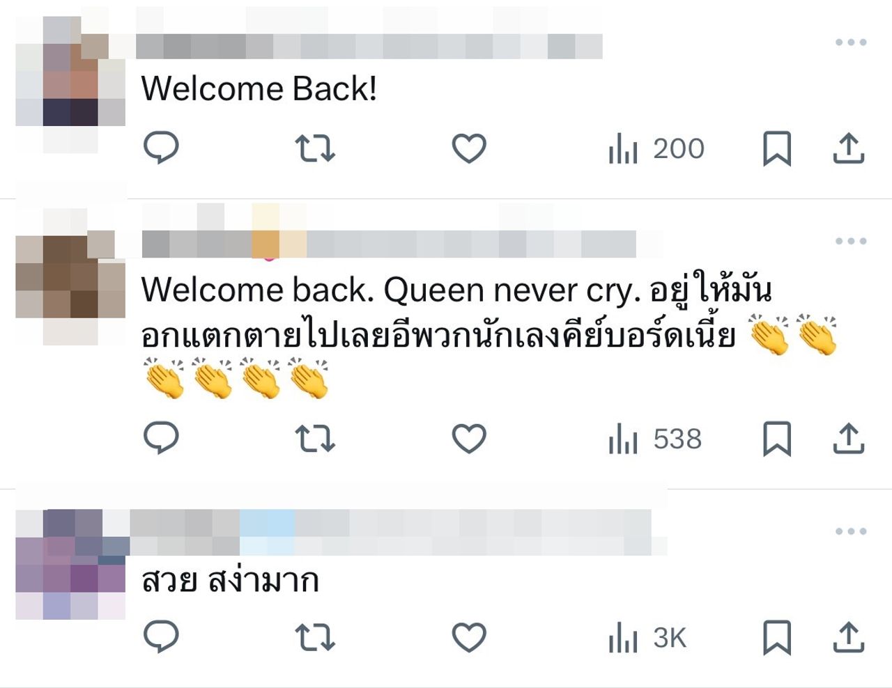 สู้กับความรู้สึกตัวเองดีกว่าค่ะน้องใหม่..มองทุกอย่างเป็นบวกแล้วสิ่งดีๆ จะเข้ามาหาเราเอง ส่วนใครจะไม่ชอบเรานั่นมันปัญหาของเขา เราโฟกัสคนที่รักเราก็พอ, เป็นกำลังใจให้นะคะ ใครก็เคยผิดพลาดทั้งนั้น อยู่ในจุดที่มีแสงคนเลยมองเห็นง่าย การวางตัวเอย คำพูดเอย มันเลยต้องเหนื่อยมากกว่าสักหน่อย อย่าล้มนาน คนที่จิตใจไม่ดีคงรอเหยียบซ้ำ สู้ๆ ค่ะ, Welcome back. Queen never cry. อยู่ให้มันอกแตกตายไปเลยอีพวกนักเลงคีย์บอร์ดเนี้ย"
