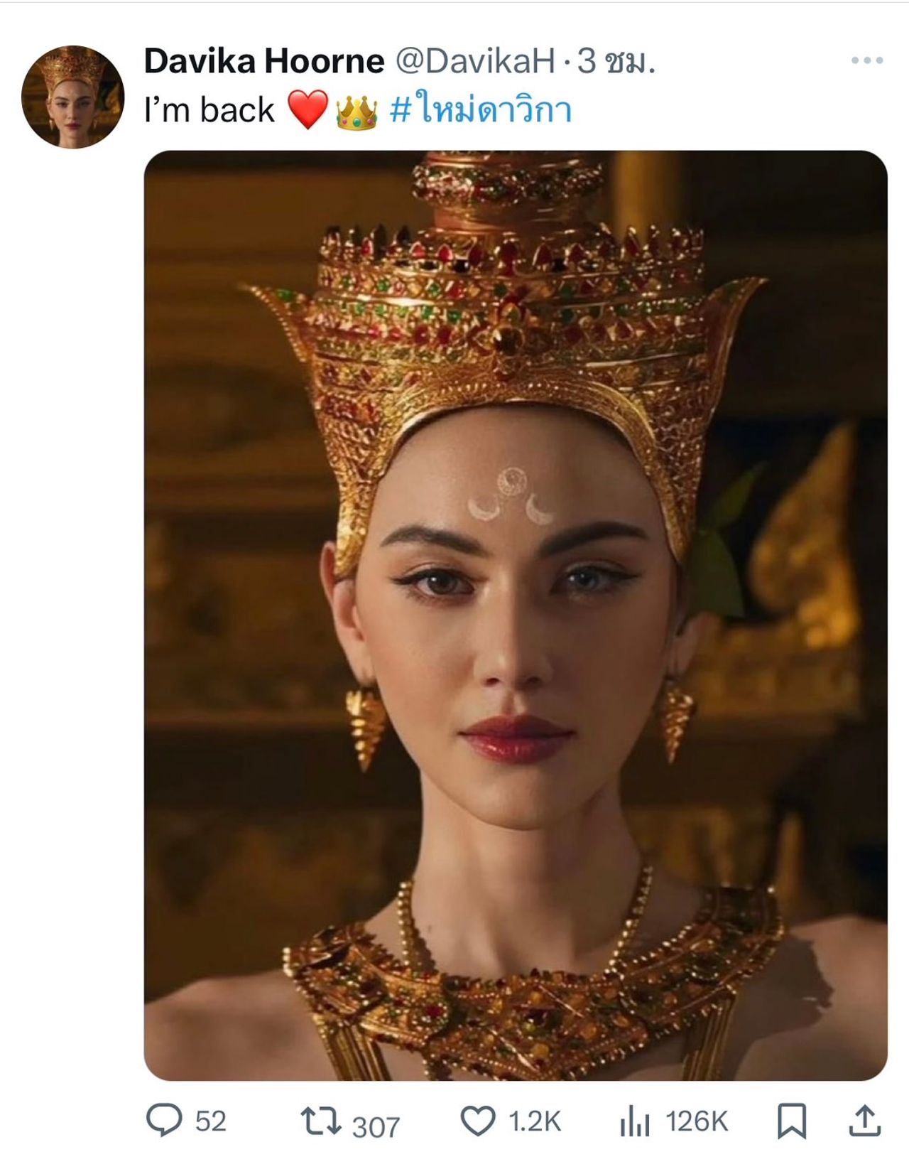 แต่ล่าสุด ในวันนี้ ใหม่ ดาวิกา ได้กลับมาเปิด account อีกครั้งหลังจากที่ปิดไป 1 วัน พร้อมเปลี่ยนรูปโปรไฟล์ใหม่ และเขียนข้อความว่า "I’m back (อีโมจิหัวใจสีแดง มงกุฎ) #ใหม่ดาวิกา"