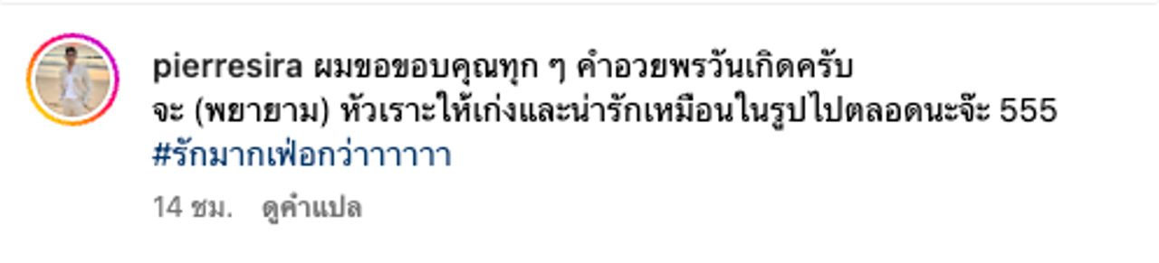 ล่าสุด หมอปิแอร์ ได้โพสต์รูปคู่สุดหวานกับ ไก่ ภาษิต ที่รูปว่าหวานแล้ว แต่แคปชั่นและแฮชแท็กนั้นหวานเว่อร์น้ำตาลขึ้นตาแบบสุด ซึ่งมีข้อความว่า "ผมขอขอบคุณทุก ๆ คำอวยพรวันเกิดครับจะ (พยายาม) หัวเราะให้เก่งและน่ารักเหมือนในรูปไปตลอดนะจ๊ะ 555 #รักมากเฟ่อกว่าาาาาา"