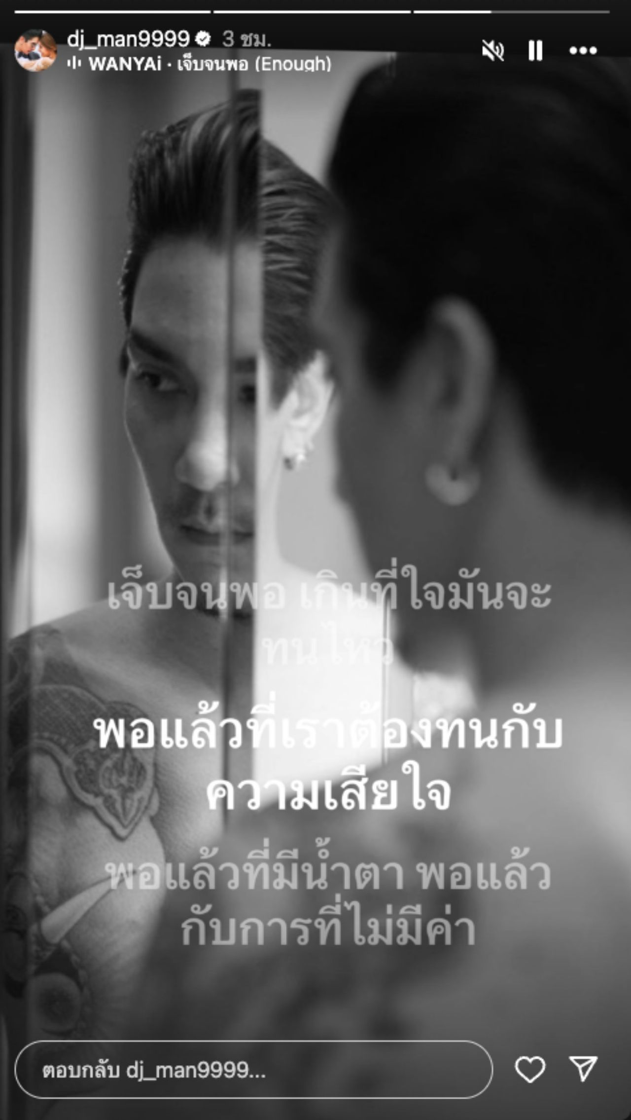 ล่าสุดเจ้าตัวก็ได้โพสต์ข้อความผ่านไอจีสตอรี่ โดยเป็นรูปของตัวเอง และใส่เพลง เจ็บจนพอ ของ WANYAI และยังได้โพสต์ข้อความสั้นๆ ผ่านทางเฟซบุ๊กว่า "ขอบคุณทุกคนที่เชื่อมั่นในตัวผมครับ" ซึ่งก็มีคนเข้ามาคอมเมนต์แสดงความยินดีกันจำนวนมาก