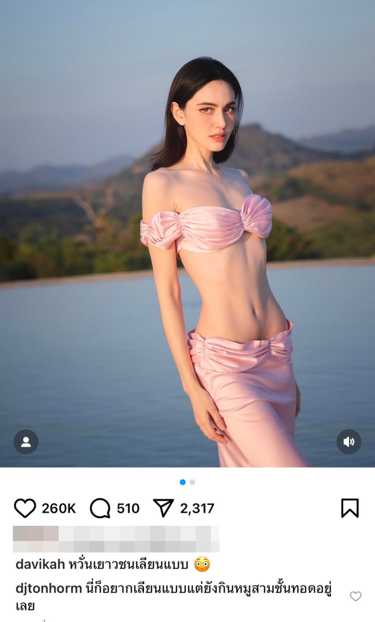 เสิร์ฟความแซ่บไม่มีแผ่วเลยทีเดียว สำหรับนักแสดงสาวสุดฮอต ใหม่ ดาวิกา ล่าสุดปล่อยช๊อตเด็ดชนิดที่ว่า หลายคนลอกเลียนแบบยากมากจริงๆ เพราะภาพดังกล่าวเป็นรูปที่อวดหุ่นเอวเอสสุดเซ็กซี่ หน้าท้องแบนราบแบบไร้ไขมัน พร้อมแคปชั่นว่า "หวั่นเยาวชนเลียนแบบ"