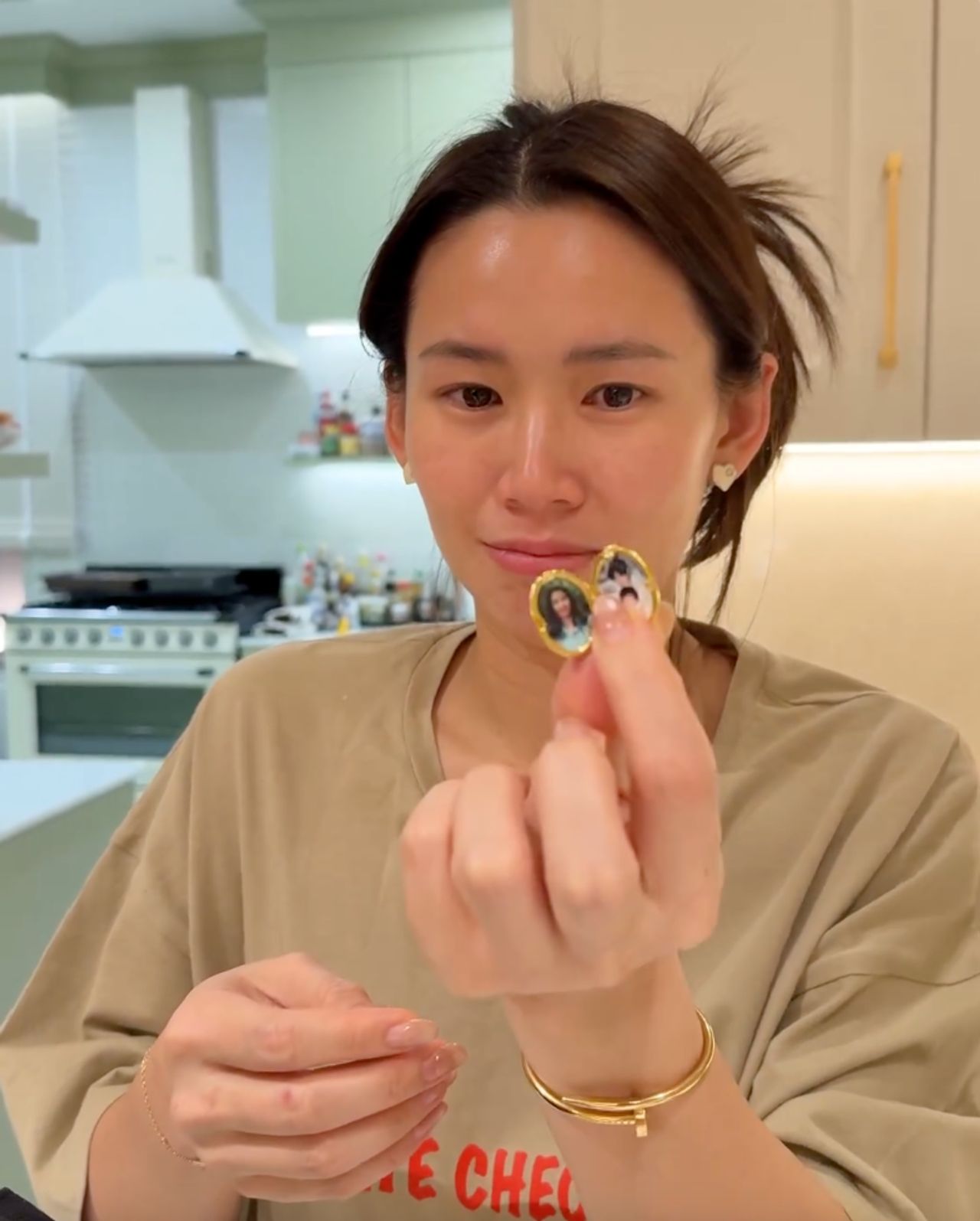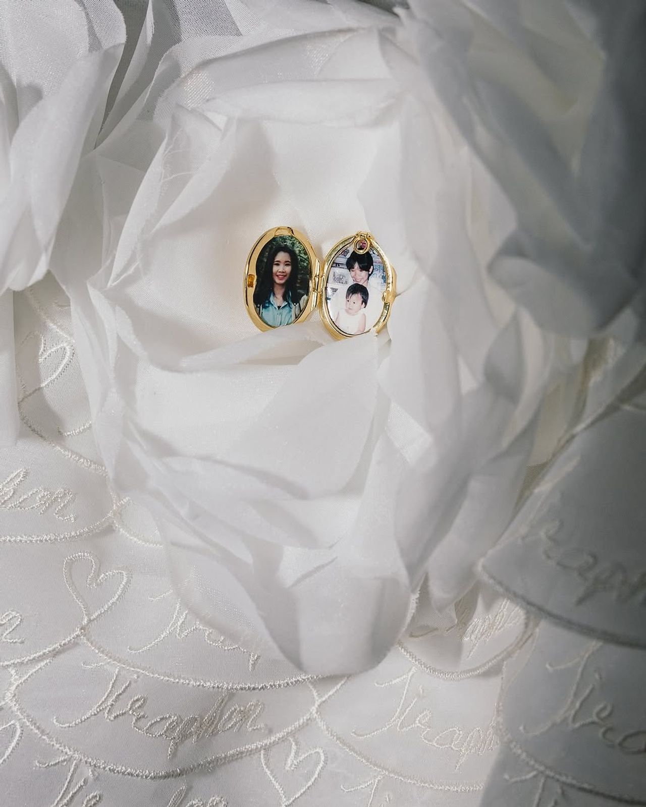 ซึ่งจี้ล็อกเก็ตดังกล่าวนั้น โฟมได้นำมาประดับที่ชุดเจ้าสาวตรงกลางอกซึ่งข้างในประกอบไปด้วยรูปโฟมในวัยเด็กและคุณแม่ ถือเป็นชุดแต่งงานที่มีความหมายสำหรับเจ้าสาวมากจริงๆ