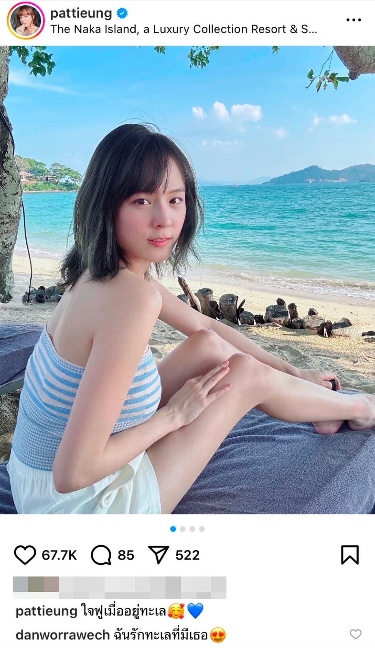 และล่าสุด พ่อแดน ก็ได้พา คุณแม่แพทตี้ ไปเที่ยวทะเลพักผ่อนกัน 2 คน เหมือนเป็นทริปแรกหลังจากที่คุณแม่คลอดลูก เติมความหวานให้กัน ด้านคุณแม่แพทตี้เองก็แจกความน่ารัก ความสดใส มาในชุดกางเกงขาสั้นเกาะอกมีสายคล้องคอลายทางสีฟ้าขาว และเขียนแคปชั่นว่า "ใจฟูเมื่ออยู่ทะเล" ด้าน แดน ก็ได้เข้ามาตอบกลับว่า "ฉันรักทะเลที่มีเธอ"