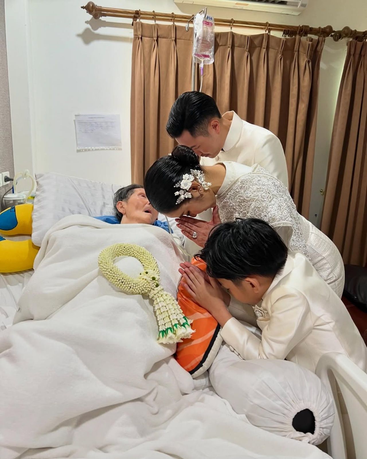 ซึ่งหลังเสร็จพิธีมงคลแล้ว แพท พร้อมด้วย พี และ น้องเรซซิ่ง ลูกชาย ก็ได้กลับมาที่บ้าน มากราบคุณแม่สุดที่รัก พร้อมกับคุณพ่อ หลายคนที่เห็นภาพดังกล่าวต่างรู้สึกอบอุ่นและประทับใจอย่างมาก