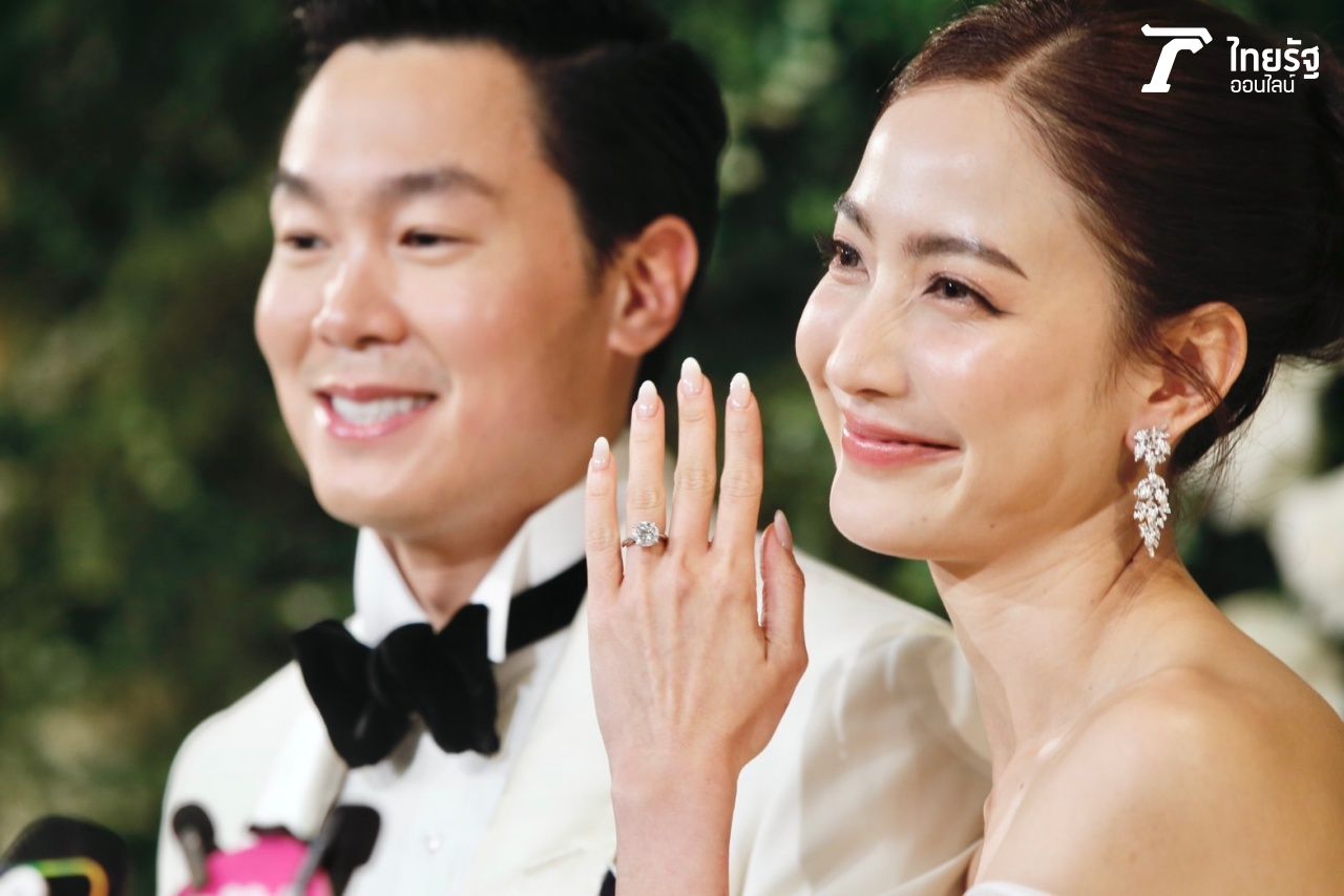 บรรยากาศในช่วงเช้าเป็นพิธีสงฆ์ พิธีหมั้น พิธีสมรส และทั้งคู่ได้จดทะเบียนสมรส ท่ามกลางแขกที่มาร่วมเป็นสักขีพยานรักกันจำนวนมาก จากนั้นในช่วงบ่ายทั้งคู่ได้ให้สัมภาษณ์กับสื่อมวลชน บอกว่า