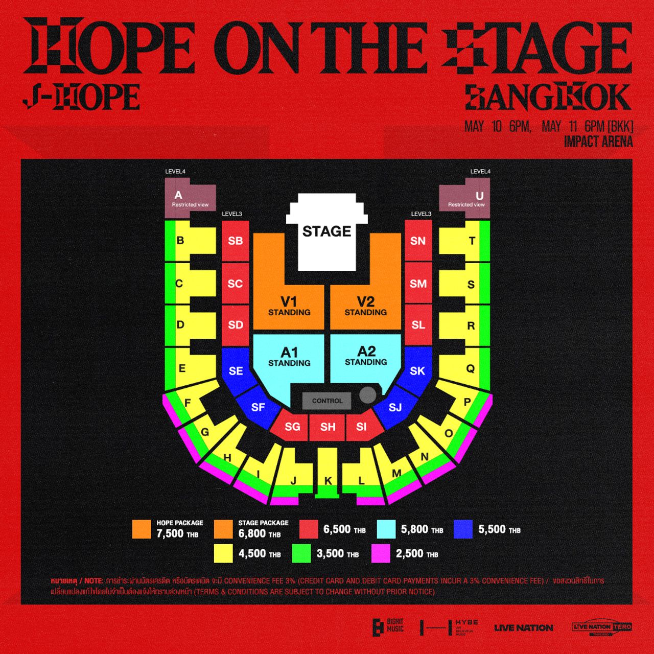 อาร์มี่ไทยห้ามพลาด! กับคอนเสิร์ตที่พี่โฮปจะพาทุกคนไปฮ็อบ! ใน j-hope Tour ‘HOPE ON THE STAGE’ in BANGKOK ที่กรุงเทพฯ ในวันที่ 11-12 พฤษภาคม 2568 ที่อิมแพ็ค อารีน่า บัตรราคาเริ่มต้น 2,500 บาท โดยจะเปิดจำหน่ายบัตรเริ่มต้นที่พรีเซลส์สำหรับ ARMY MEMBERSHIP ในวันที่ 19 กุมภาพันธ์ 2568 (10:00 น. - 21:59 น.) ทาง Thaiticketmajor.com ตามด้วย Live Nation Tero Pre-sale ตั้งแต่เวลา 10:00 น. - 21:59 น. ในวันที่ 20 กุมภาพันธ์ 2568 ทางเว็บไซต์ Livenationtero และจำหน่ายบัตรรอบทั่วไปในวันที่ 21 กุมภาพันธ์ 2568 10.00 น. เป็นต้นไปทาง Thaiticketmajor