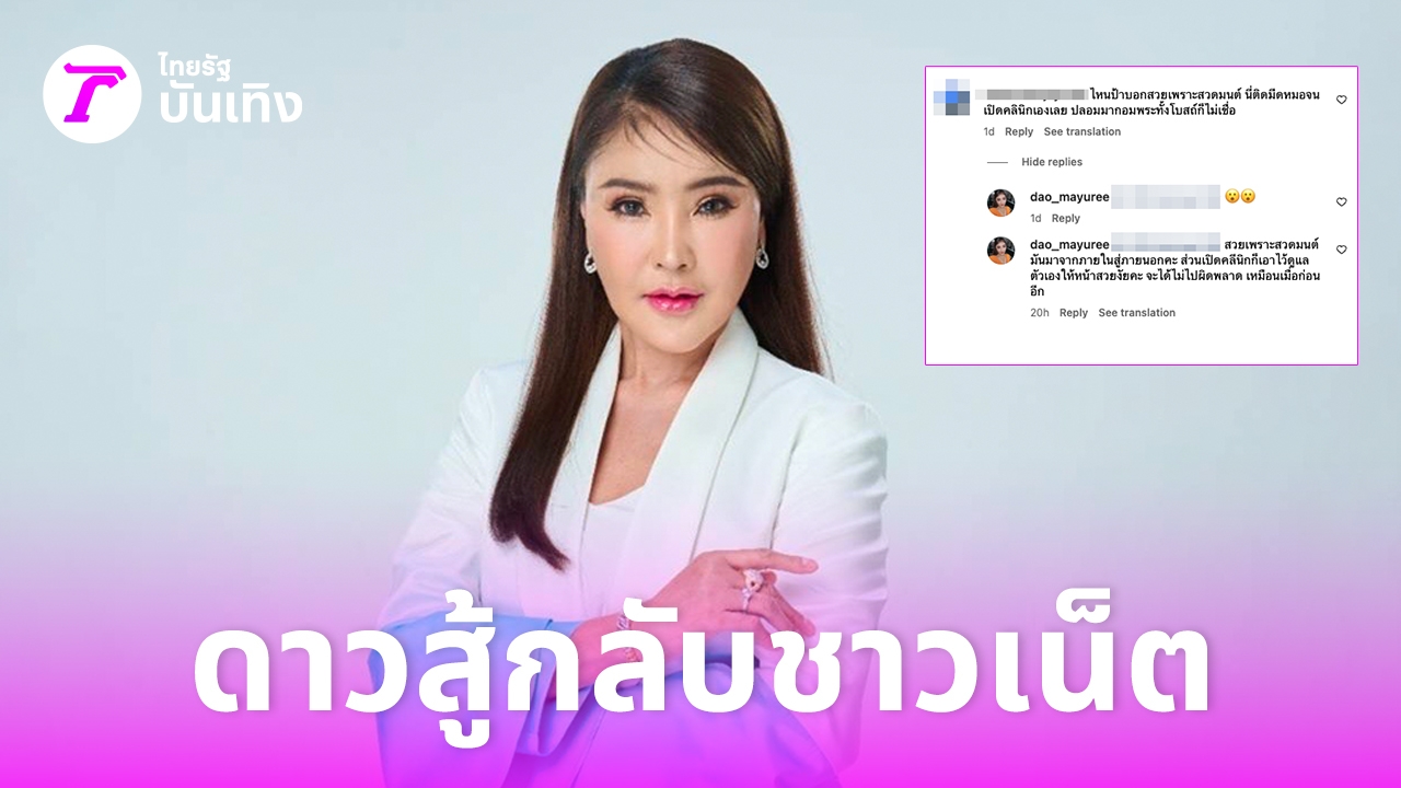 นอกจากนี้ยังมีอีกโพสต์หนึ่งที่เจ้าตัวโพสต์ลงพร้อมใส่แคปชั่นว่า “ใส ๆ เบา ๆ” ก็โดนชาวเน็ตคอมเมนต์ว่า “ไหนป้าบอกว่าสวยเพราะสวดมนต์ นี่ติดมีดหมอจนเปิดคลินิกเองเลย ปลอมมากอมพระทั้งโบสถ์มาพูดก็ไม่เชื่อ”