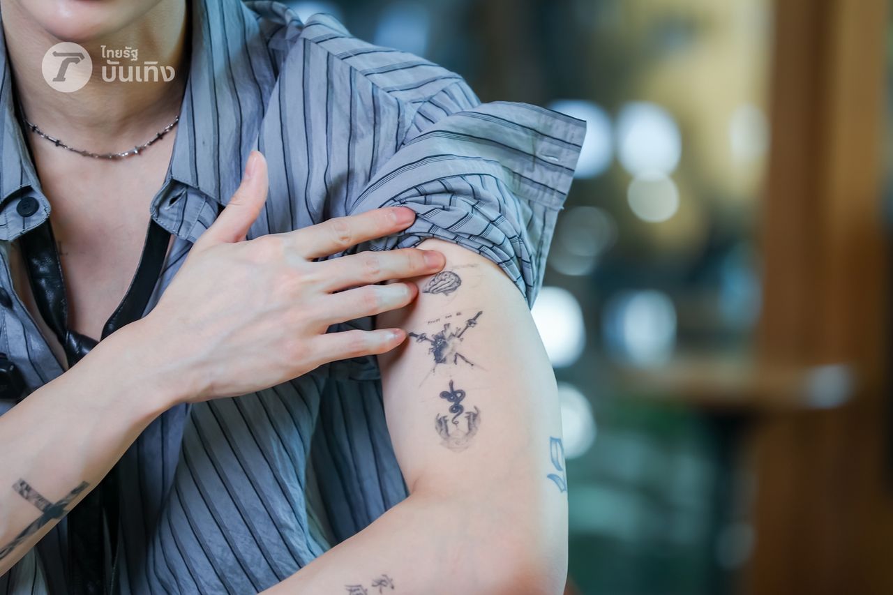 และหากใครที่ติดตาม จะเห็นว่าไทแทนนั้นจะมีรอยสักตามร่างกายอยู่หลายจุด และแน่นอน ทุกๆ ลายสักย่อมมีความหมายอย่างแน่นอน เราเลยขอถามถึงลายสักแรก และลายสักล่าสุดที่เจ้าตัวบินข้ามน้ำข้ามทะเลไปสักไกลถึง LA ซึ่งเราฟังไทแทนเล่าถึงเรื่องรอยสักนี้บอกเลยว่าเพลินมาก เพราะเจ้าตัวเล่าละเอียดแบบสุดๆ และทุกลายก็มีความหมายและเรื่องราวเกี่ยวกับไทแทนเป็นอย่างดี