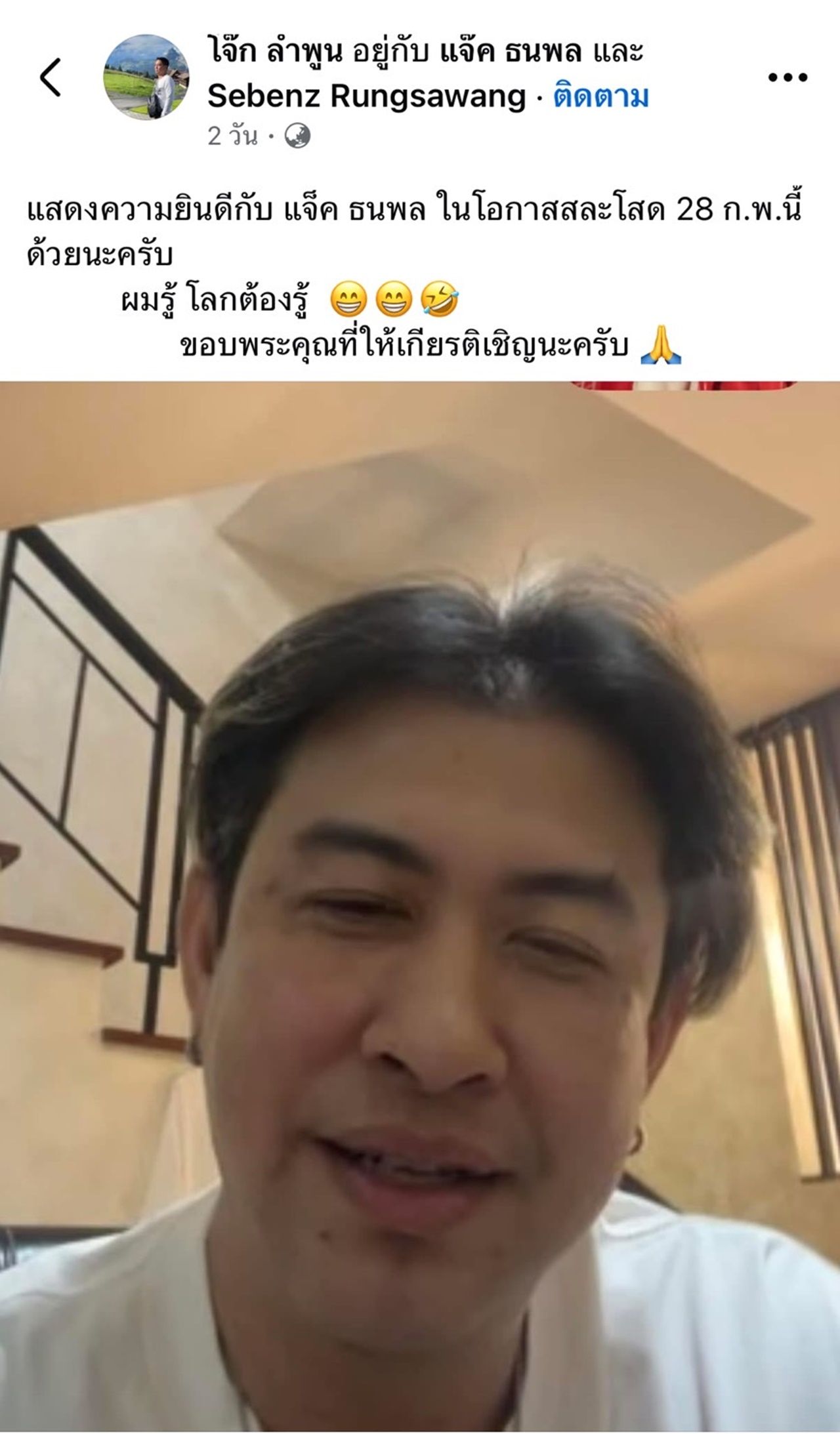 ล่าสุดมีข่าวดีทำเซอร์ไพรส์แฟนๆ อีกครั้ง เมื่อเฟซบุ๊ก โจ๊ก ลำพูน ได้โพสต์ข้อความลงเฟซบุ๊กส่วนตัวแจ้งข่าวดีเกี่ยวกับ แจ๊ค ธนพล บอกว่า "แสดงความยินดีกับ แจ๊ค ธนพล ในโอกาสสละโสด 28 ก.พ.นี้ด้วยนะครับ ผมรู้ โลกต้องรู้ ขอบพระคุณที่ให้เกียรติเชิญนะครับ"