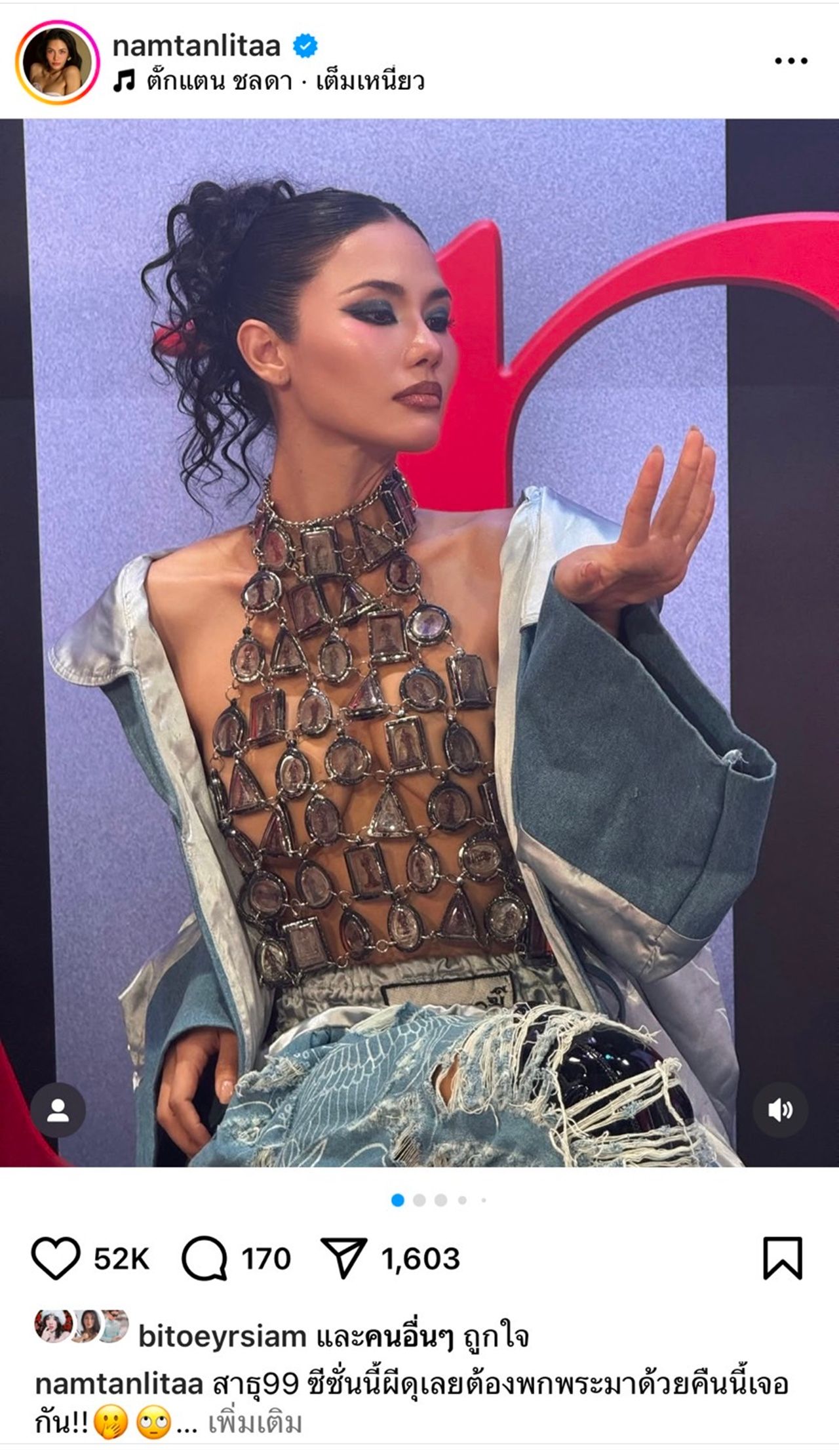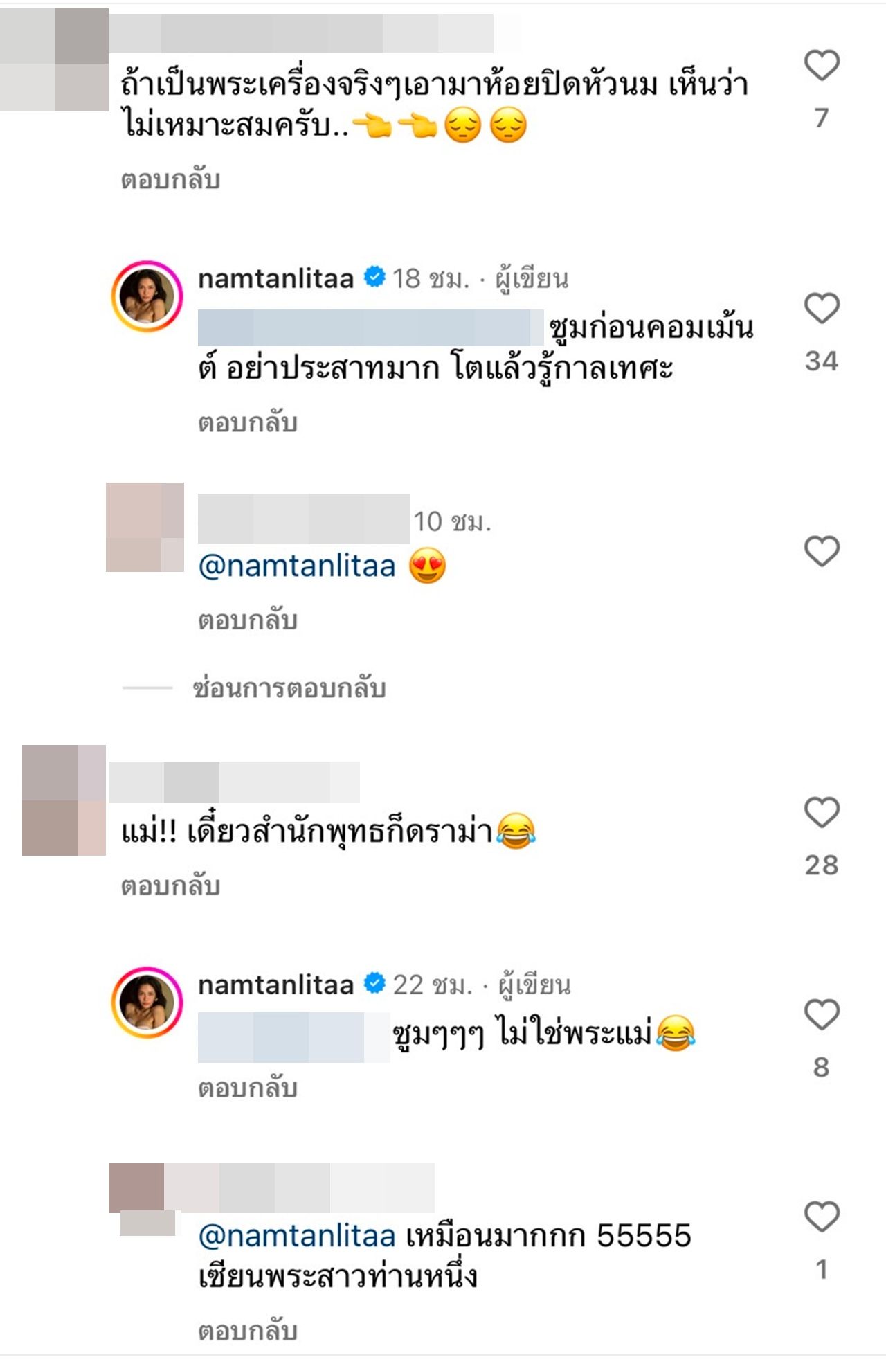นอกจากนี้ยังมีชาวเน็ตบางคนได้เข้ามามาคอมเมนต์ บอกว่า "พระเครื่องต้องกลับกลายเป็นเสื้อผ้าแฟชั่น... แบบนี้จะเหมาะได้อย่างไรเห็นแล้วเศร้า" ด้าน น้ำตาล ก็ได้เข้ามาตอบกลับว่า "พระเครื่องก็ส่วนพระเครื่องสิคะ งง"