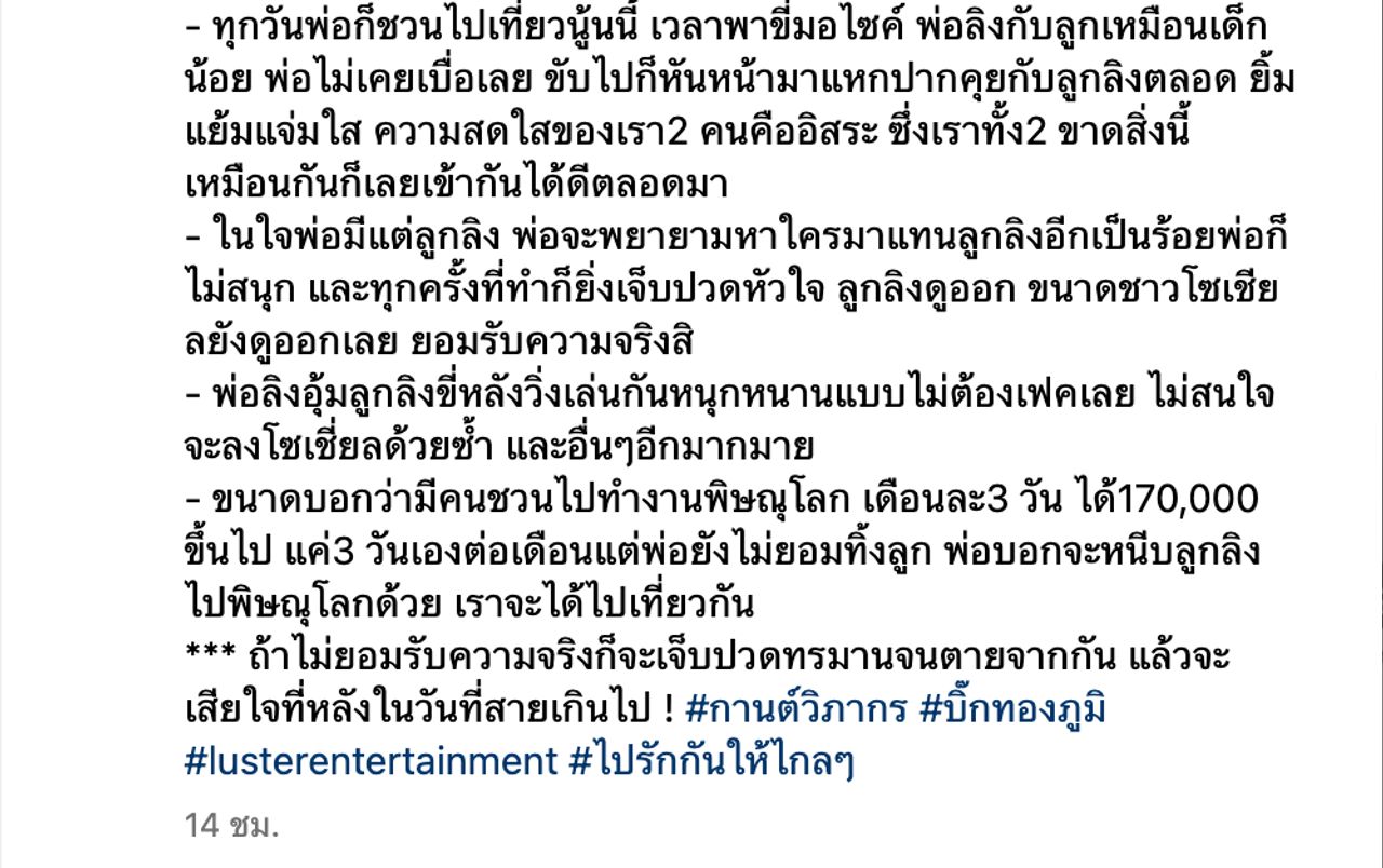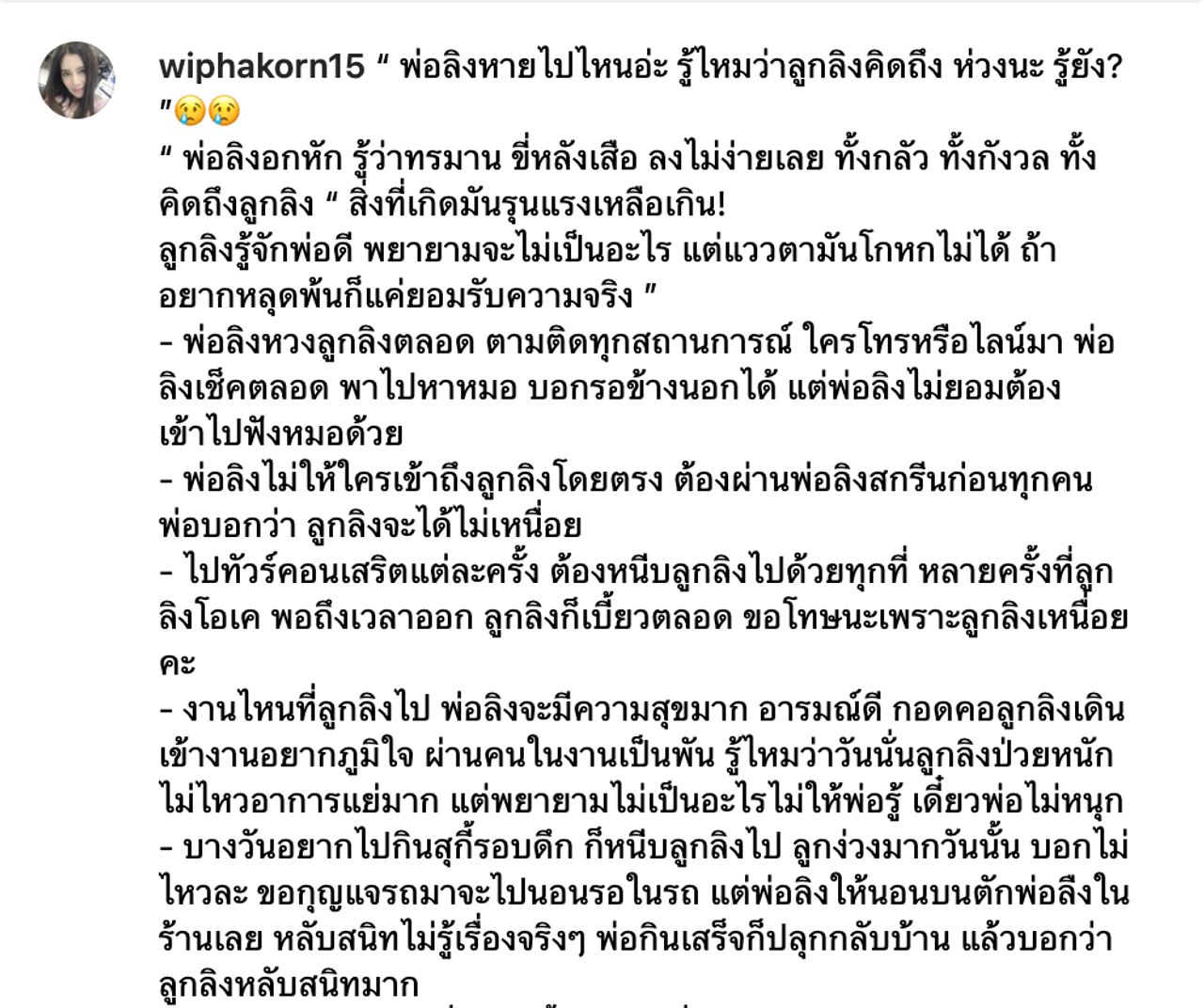 - ในใจพ่อมีแต่ลูกลิง พ่อจะพยายามหาใครมาแทนลูกลิงอีกเป็นร้อย พ่อก็ไม่สนุก และทุกครั้งที่ทำก็ยิ่งเจ็บปวดหัวใจ ลูกลิงดูออก ขนาดชาวโซเชียลยังดูออกเลย ยอมรับความจริงสิ
