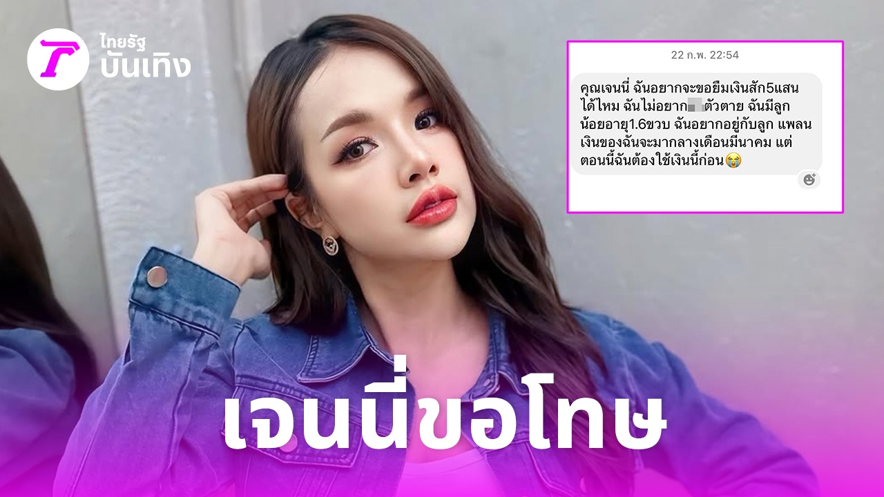 "คุณเจนนี่ ฉันอยากจะขอยืมเงินสัก 5 แสนได้ไหม ฉันไม่อยาก...ตัวตาย ฉันมีลูกน้อยอายุ 1.6 ขวบ ฉันอยากอยู่กับลูก แพลนเงินของฉันจะมากลางเดือนมีนาคม แต่ตอนนี้ฉันต้องใช้เงินนี้ก่อน" พร้อมอีโมจิร้องไห้