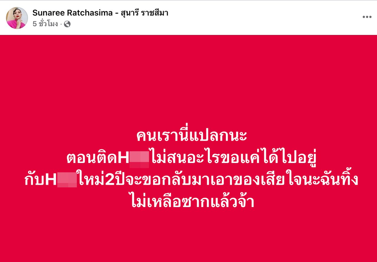 "คนเรานี่แปลกนะ ตอนติด...ไม่สนอะไร ขอแค่ได้ไปอยู่กับ...ใหม่ 2 ปีจะขอกลับมาเอาของ เสียใจนะฉันทิ้งไม่เหลือซากแล้วจ้า"