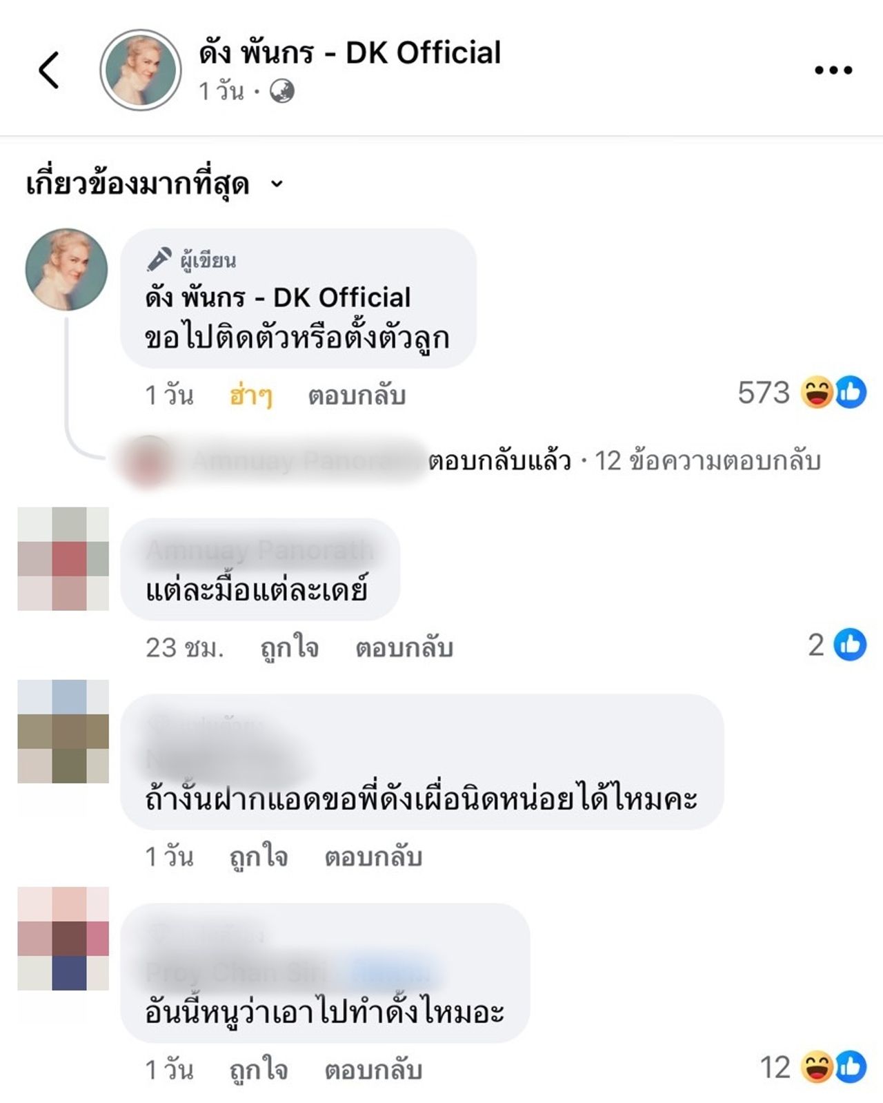 งานนี้นักร้องหนุ่มเขียนแคปชั่นบรรยายว่า “พอเหรอลูก ? .. พี่เนี่ยมีพอให้หนูเหรอลูก หลังไมค์ 10% บอกคิดถึง 90% ทักมาขอเบี้ย #ดังพันกร #dkofficial #dunkphunkorn” และคอมเมนต์ใต้โพสต์นี้ไว้ว่า “ขอไปติดตัวหรือตั้งตัวลูก”