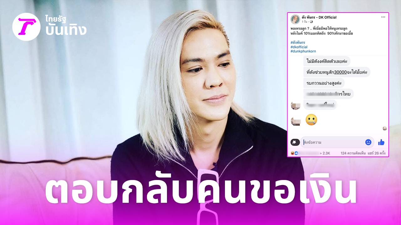 ซึ่ง ดัง พันกร ได้โพสต์ภาพข้อความแชตของชาวเน็ตรายหนึ่งที่ส่งมาบอกว่า "ไม่มีตังค์ติดตัวเลยค่ะ พี่ดังช่วยหนูสัก 30,000 จะได้มั้ยคะ รบกวนอย่างสูงค่ะ" แถมยังส่งเลขบัญชีให้โอนอีกด้วย