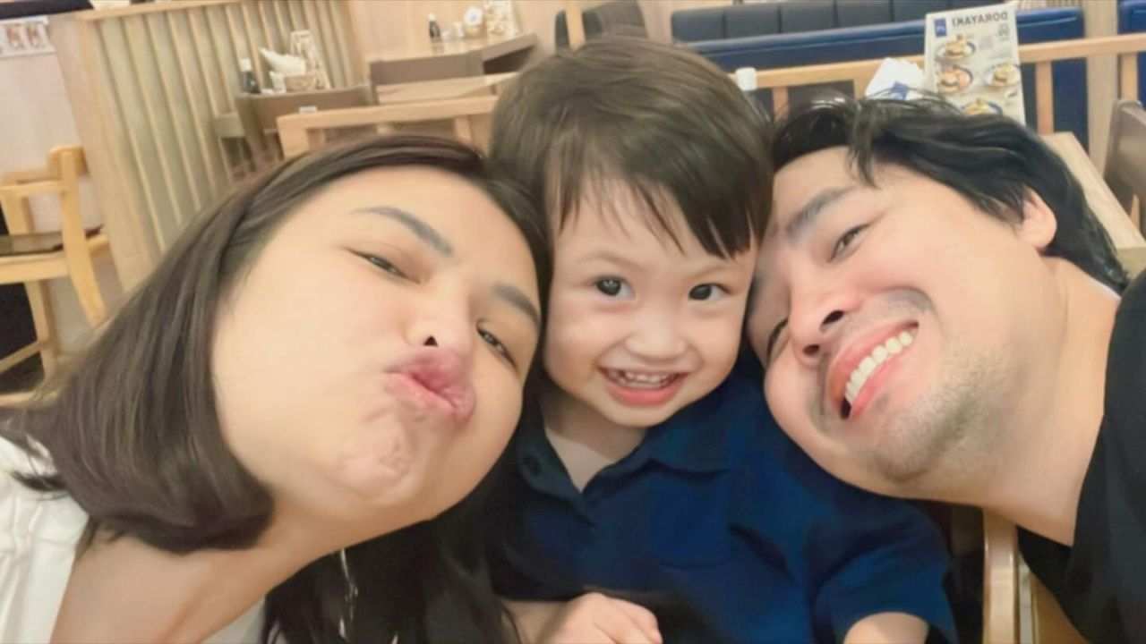 จากนั้นสามีวิ่งไปอุ้มลูกมาโชว์ และหนูเล็กบอกว่า "เป็นไงล่ะ ลูกหนึ่ง"