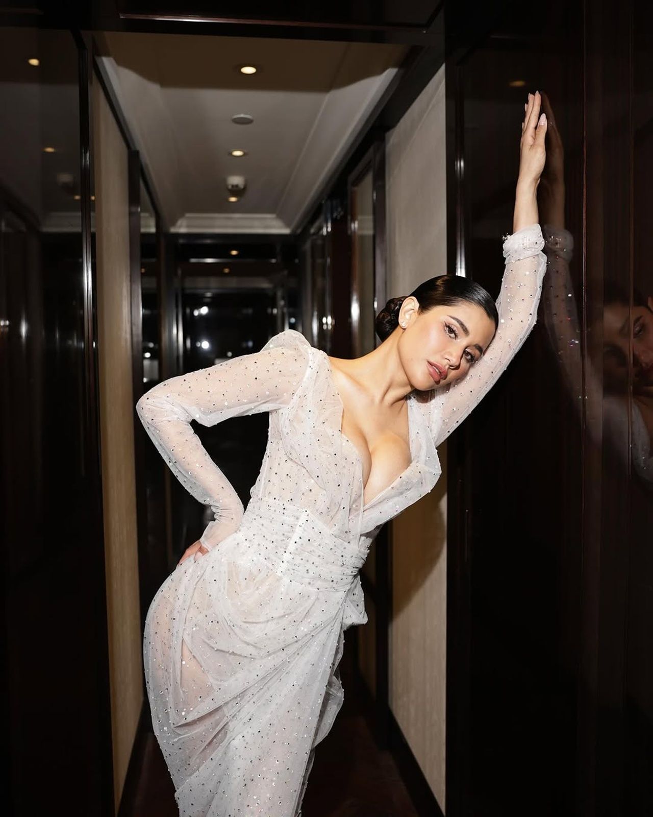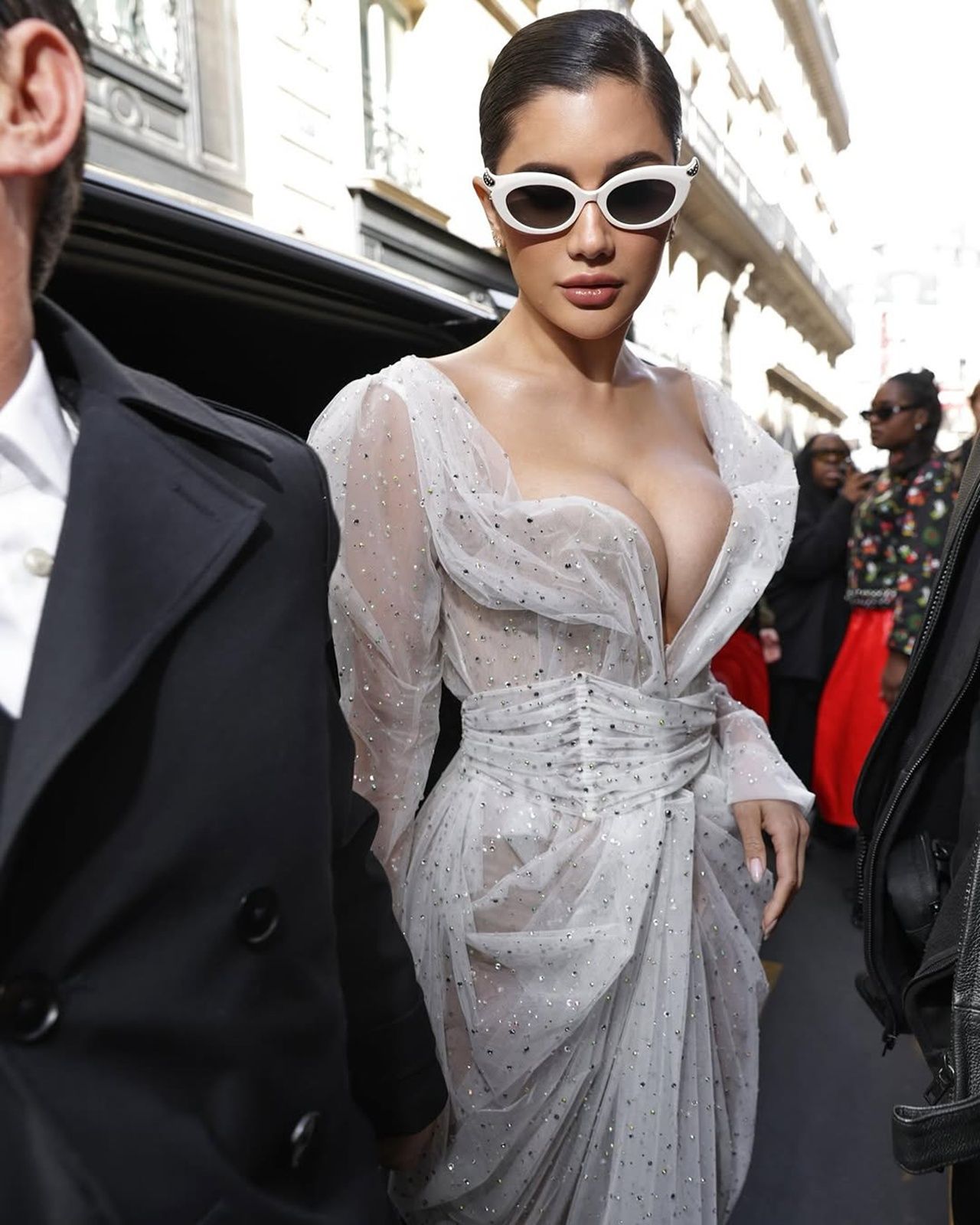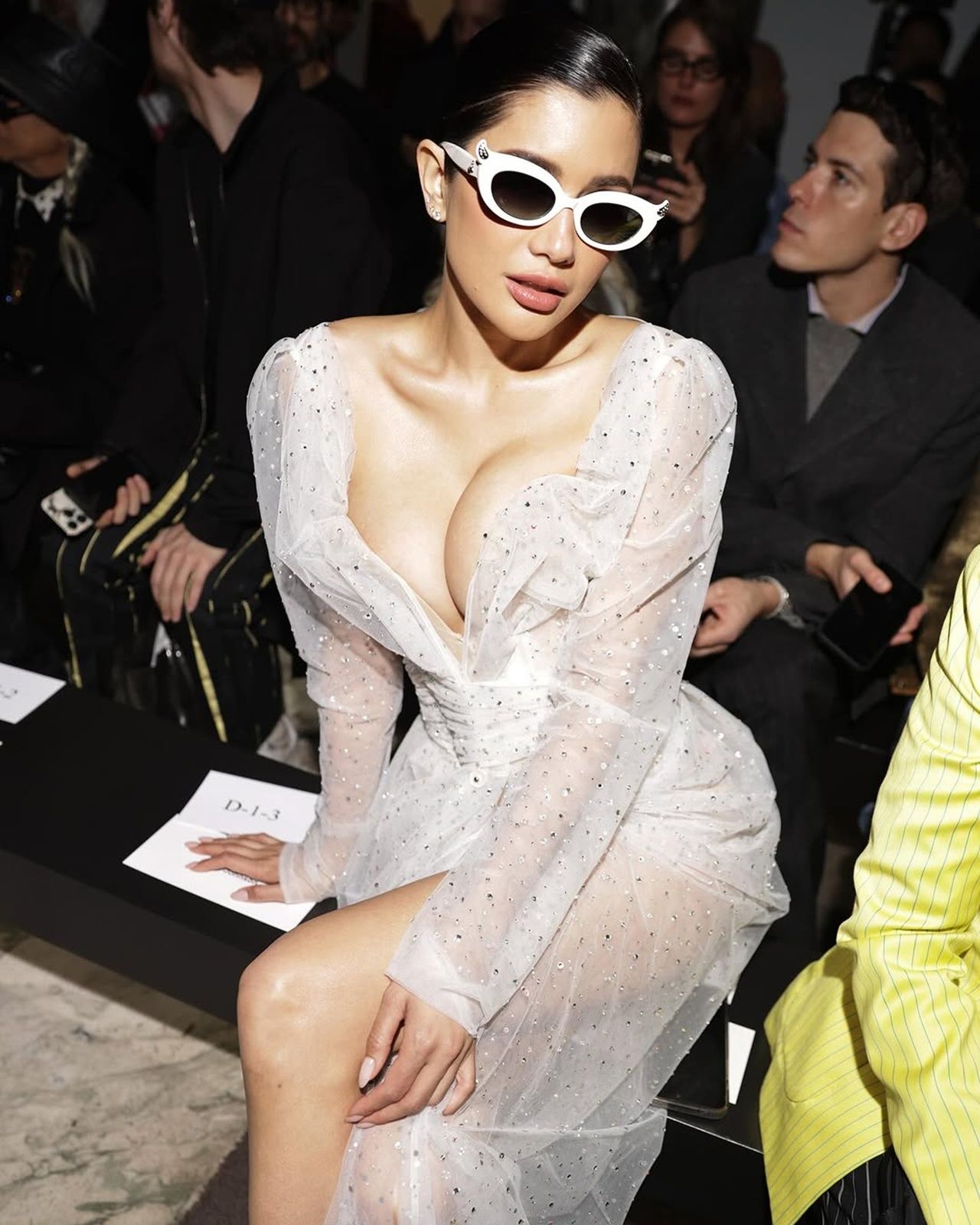 ล่าสุด ปู ได้ไปร่วมชมแฟชั่นโชว์แบรนด์ Vivienne Westwood คอลเลกชั่น Autumn-Winter 2025/26 ต้องบอกเลยว่า ทันทีที่เธอปรากฏตัวในงาน สวยสะดุดตามากจริงๆ โดย ปู มาในชุดเดรสซีทรูสีขาวประดับคริสตัล ด้านบนแหวกอกสุดเซ็กซี่
