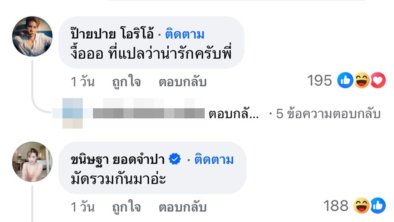 ด้านแฟนๆ ที่ติดตามก็ได้เข้ามาคอมเมนต์ทั้งคู่กันจำนวนมาก ซึ่งทุกคนต่างก็ขำ เอ็นดูในความหยอกกันของพี่น้อง 2 คนนี้ งื้อออ