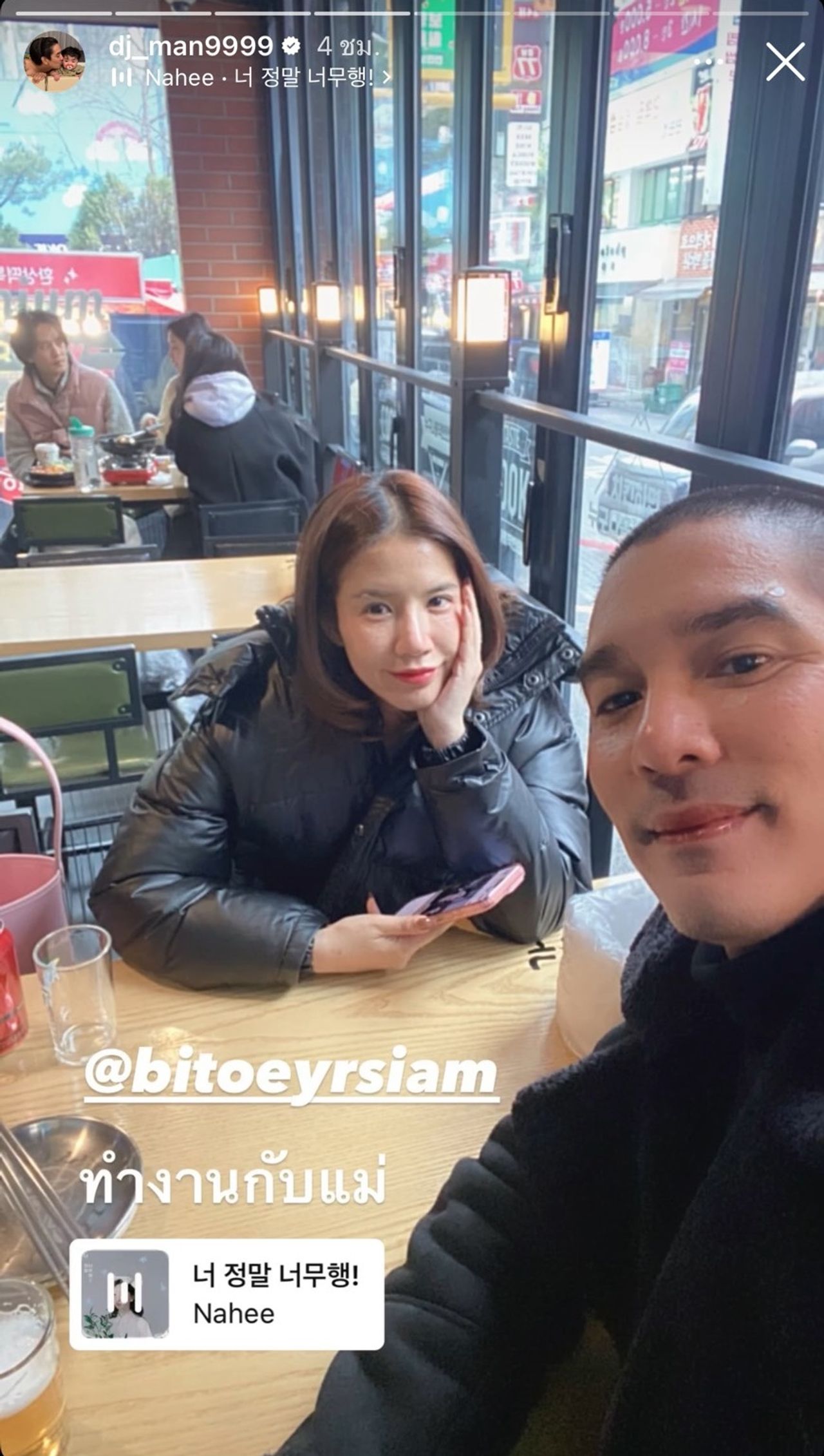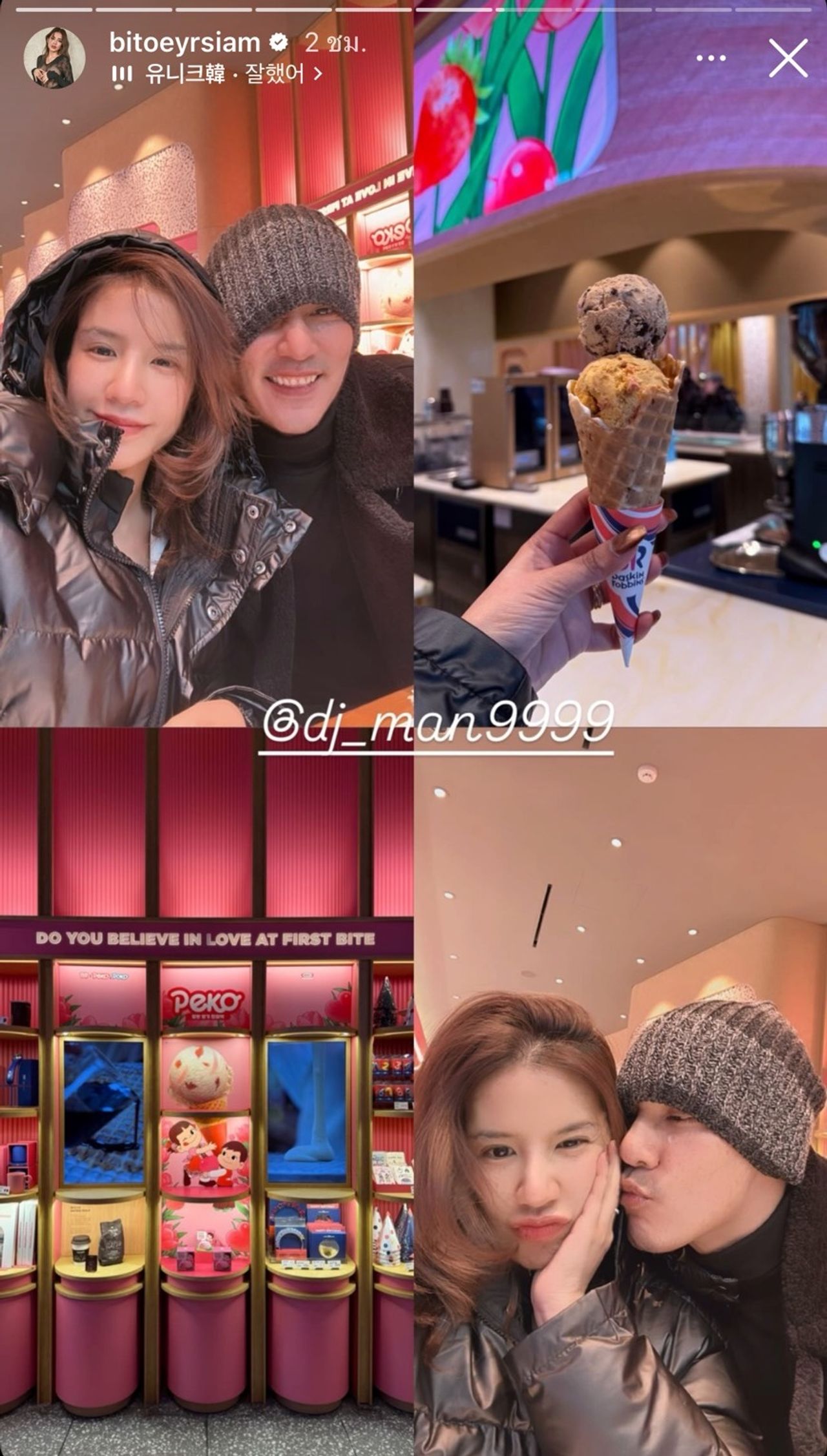 ล่าสุด ใบเตย-ดีเจแมน เคลียร์คิวบินลัดฟ้าไปเที่ยวประเทศเกาหลีใต้ ซึ่ง ใบเตย ก็ได้โพสต์ภาพบรรยากาศที่สนามบินสุวรรณภูมิก่อนเดินทางไปเที่ยว ท่ามกลางคอมเมนต์จากเพื่อนๆ แฟนๆ ที่ต่างอวยพรขอให้เดินทางปลอดภัย เที่ยวให้สนุก บ้างก็แซวน้องเวทมนต์ว่าแก้มแน่น ตัวแน่น ชุดก็แน่น ซึ่งหลังจากนั้น ใบเตย ก็ได้โพสต์ภาพบรรยากาศที่โซล เกาหลีใต้ เขียนแคปชั่น “0’ หนาวสุดๆไปเล้ย:)”