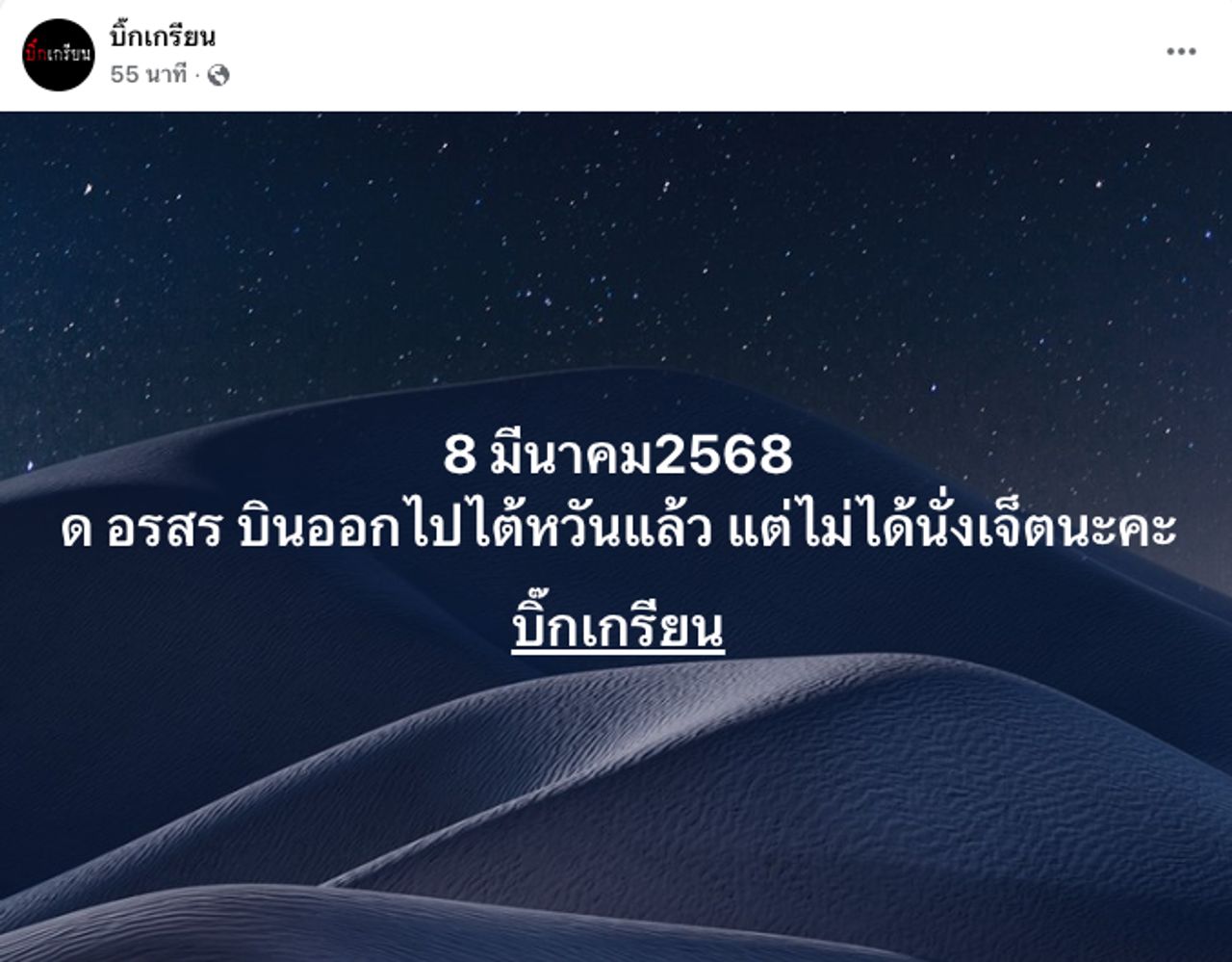 และข่าวลือล่าสุดที่ทำเอาชาวเน็ตแตกตื่นกันไม่น้อย เมื่อเพจดังอย่าง บิ๊กเกรียน และ อีป้าข้างบ้าน พร้อมใจกันโพสต์แจ้งข่าวว่า ดาราสาวเลิกกับสามีแล้ว งานนี้ทำเอาทุกคนต่างพากันสงสัย เพราะเพจ บิ๊กเกรียน โพสต์ข้อความเอาไว้ว่า ดาราสาวบินไปไต้หวันแล้วเมื่อวันที่ 8 มีนาคม 2568 แต่ไม่ได้นั่งเจ็ตส่วนตัวไป