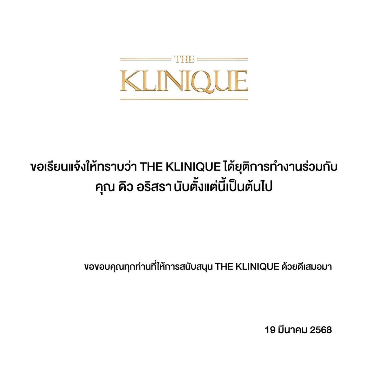 ล่าสุดก็มีเรื่องที่ทำให้ ดิว อริสรา ต้องปวดหัวแบบไม่พัก เมื่อแบรนด์ที่ร่วมงานกับเจ้าตัว ต่างทยอยประกาศยุติการร่วมงานแล้ว ทั้งแบรนด์คลินิกความงาม THE KLINIQUE ศัลยกรรมตกแต่ง รวมไปถึงแบรนด์ผลิตภัณฑ์เสริมอาหาร SAIKONO COLLAGEN ด้วย ซึ่งคาดว่าเป็นผลมาจากกรณีข่าวฉาวของดิวที่เป็นกระแสร้อนในเวลานี้นั่นเอง