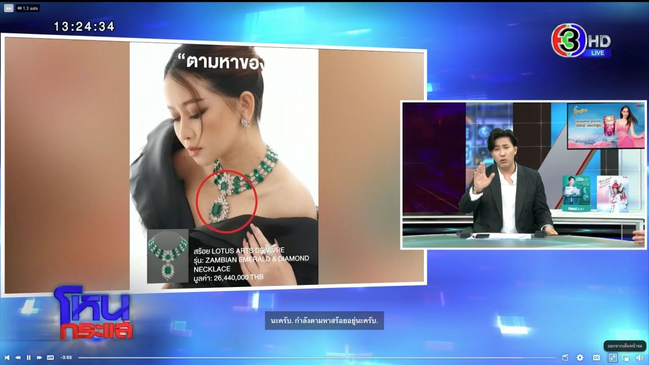 โดย หนุ่ม กรรชัย เปิดเผยถึงเรื่องนี้ในรายการ “โหนกระแส” ทางช่อง 3 โดยบอกว่า “สร้อย LOTUS ที่มีมูลค่า 26 ล้านกว่าบาท ตอนนี้คุณเมย์อาจกำลังตามหาสร้อยอยู่ เพราะฉะนั้นเนี่ยขออนุญาตคุณผู้ชมครับ ผมให้คุณผู้ชมดูอะไรอย่างนึง”