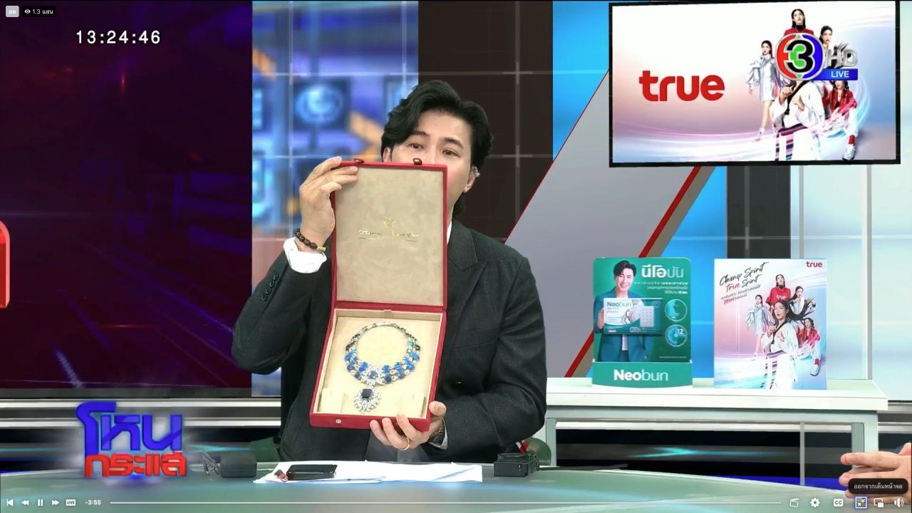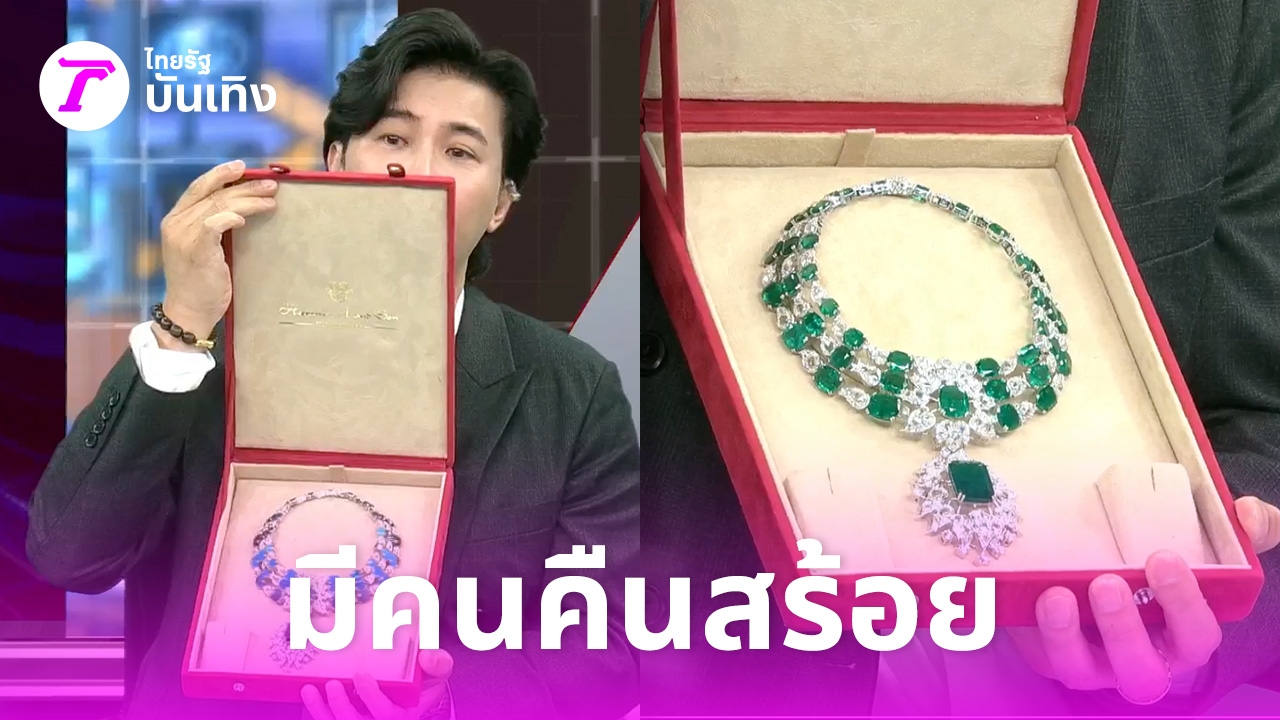 เรียกว่าฮือฮากันทั้งโซเชียลเลยทีเดียว เมื่อพิธีกรชื่อดัง หนุ่ม กรรชัย กำเนิดพลอย สามารถนำสร้อย LOTUS ARTS DE VIVRE รุ่น ZAMBIAN EMERALD DIAMOND NECKLACE มูลค่า 26,440,000 บาท ซึ่งเป็นสร้อยเส้นเดียวกับที่นักธุรกิจสาว เมย์ วาสนา อินทะแสง ให้นางร้ายสาว ดิว อริสรา ทองบริสุทธิ์ ยืมไป และมีเพียงเส้นเดียวในโลก กลับมาได้